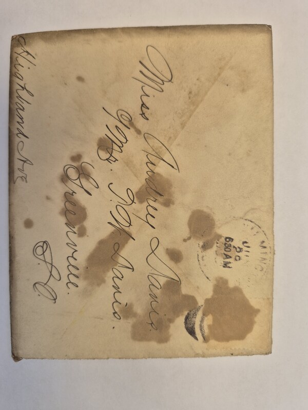 Envelope: Jul. 9, 1895. Madison Drummond to Audrey Davis