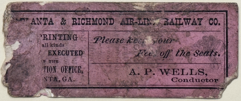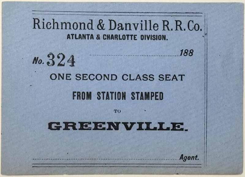 Richmond and Danville R. R. Co. Second Class Seat ticket