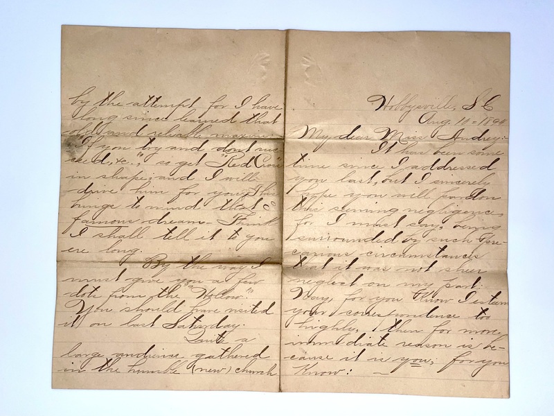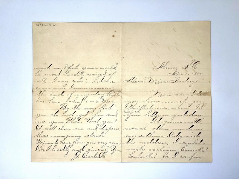 Letter: Aug. 10, 1894. J. Earle Alexander to Audrey Davis Possible second half of the letter missing