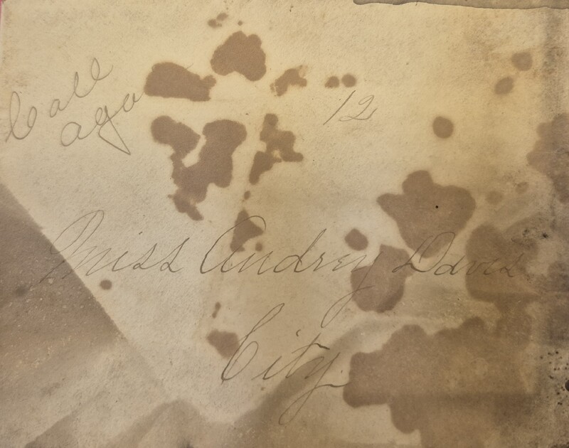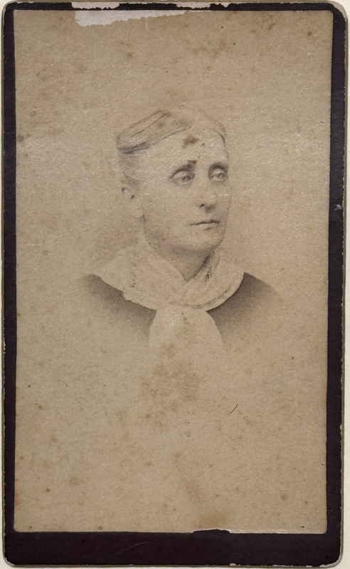 Photo of Victoria Bailey addressed on the back "To Brother John and Family." This references her brother, John Cunningham, sister-in-law Sophronia Prince Cunningham, and their ~11 children.