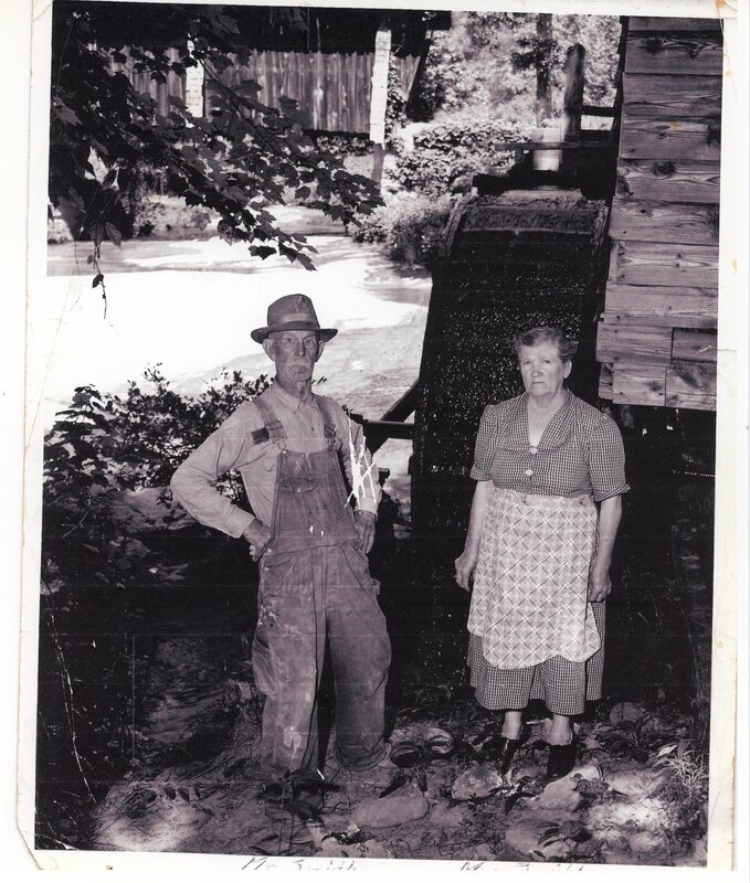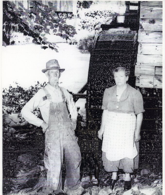 Photograph of Mr. and Mrs. Smith next to the mill at Campbell's Covered Bridge
