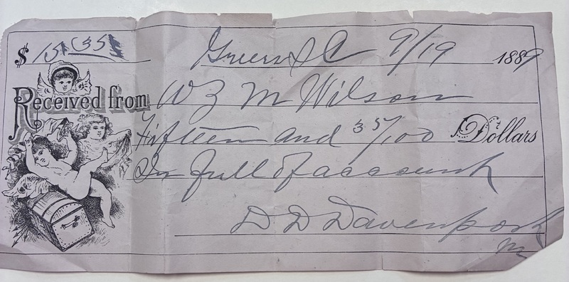 Check from D.D Davenport to W.Z.M Wilson, September 19, 1889