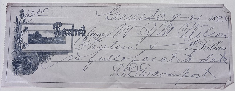 Check from D.D Davenport to W.Z.M Wilson, September 21, 1896