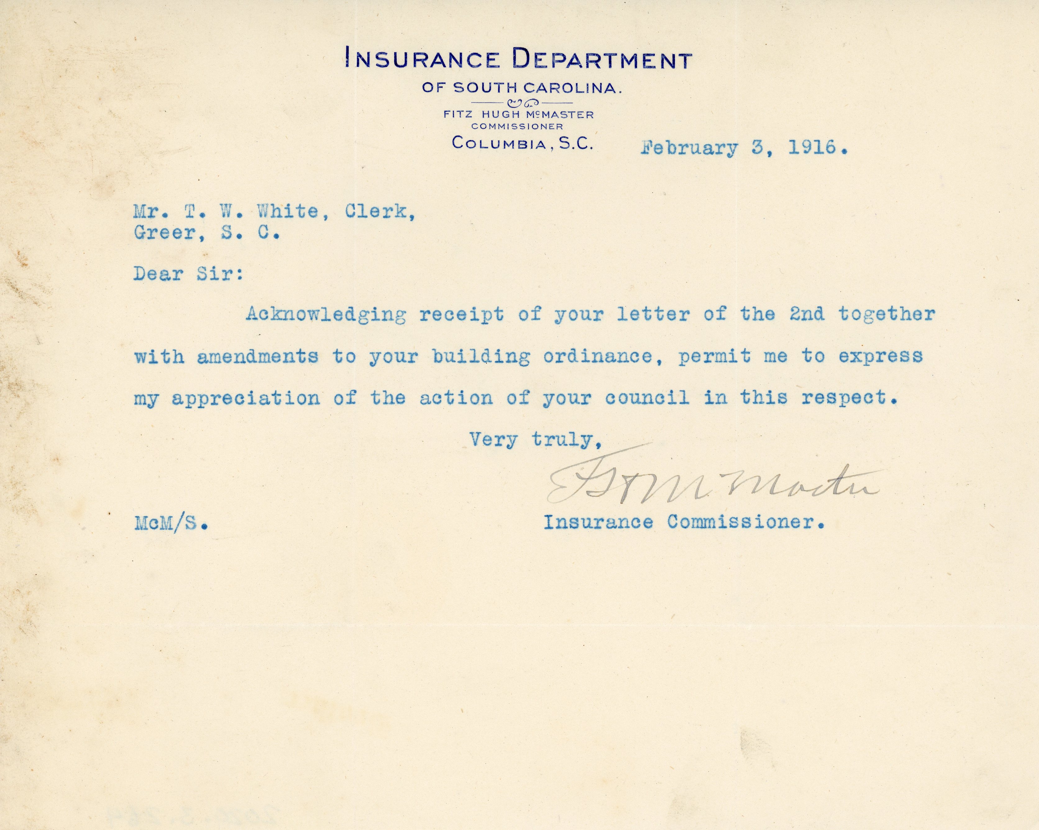 Letter 3 February 1916 F. H. McMaster to T. W. White