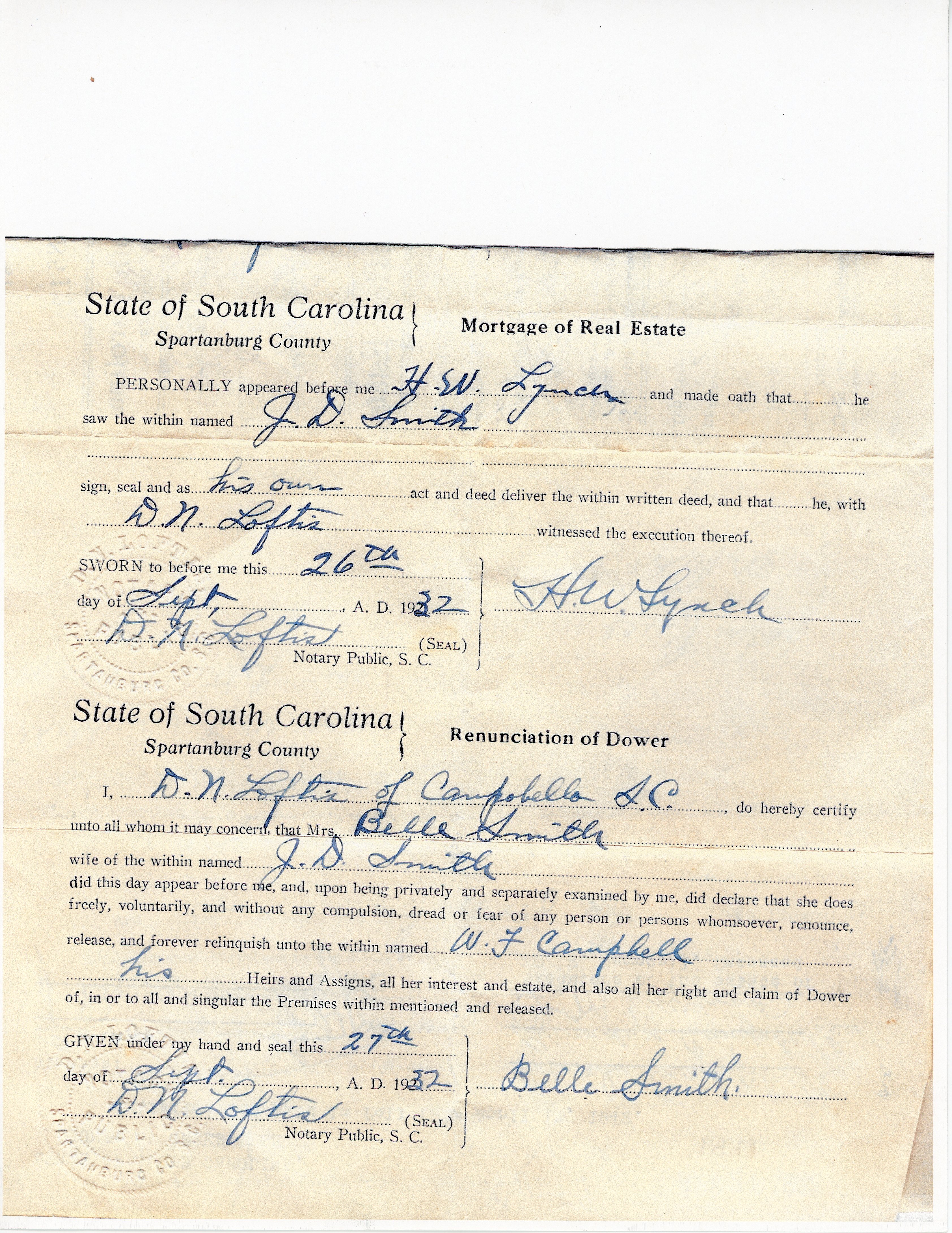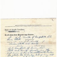 I, D. N. Loftis of [?] S.C., do hereby certify