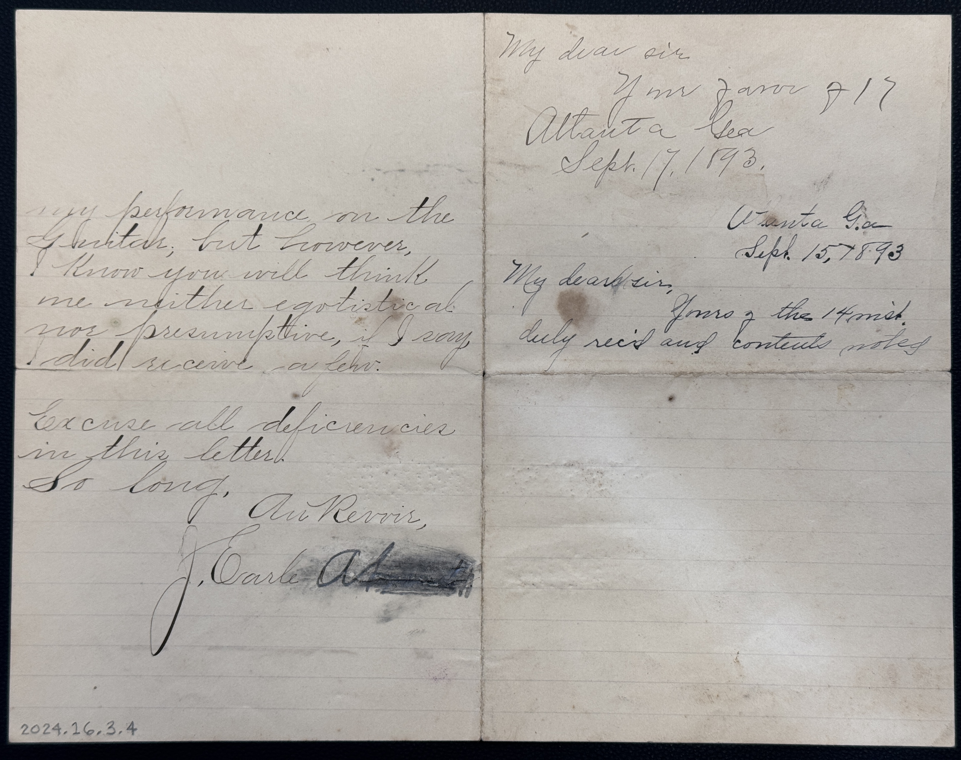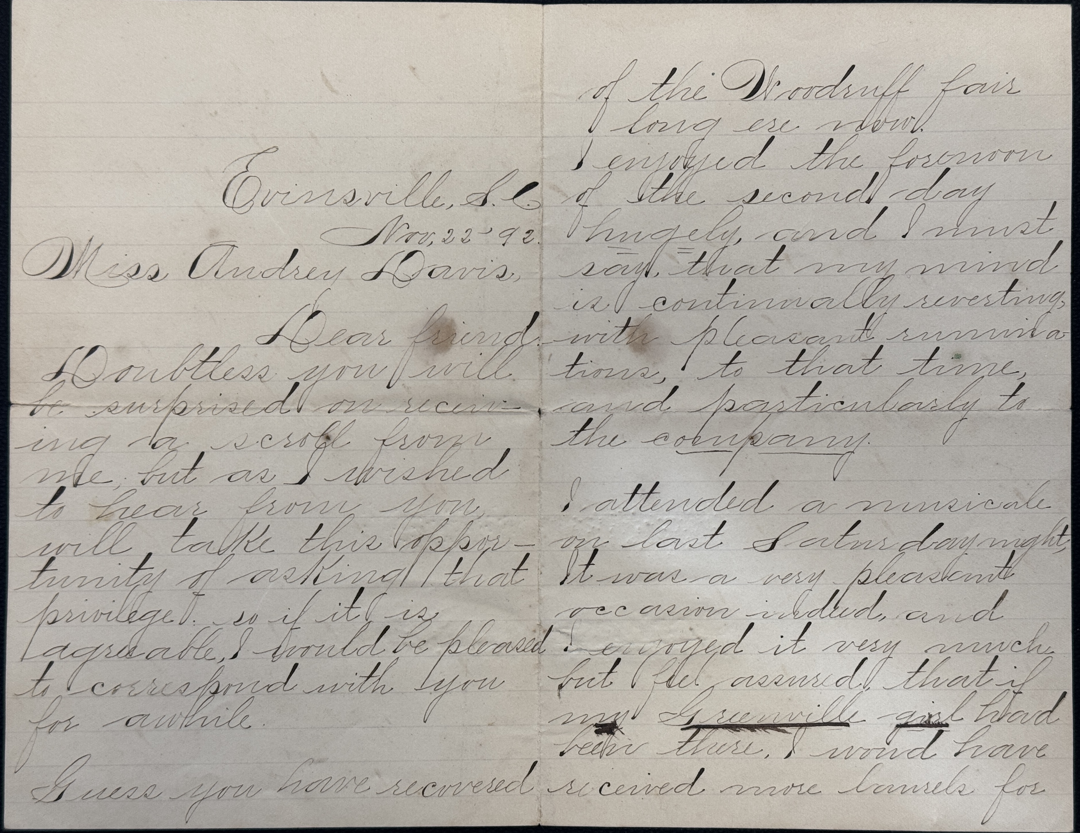 Letter: Nov. 22, 1892. J. Earle A. to Audrey Davis