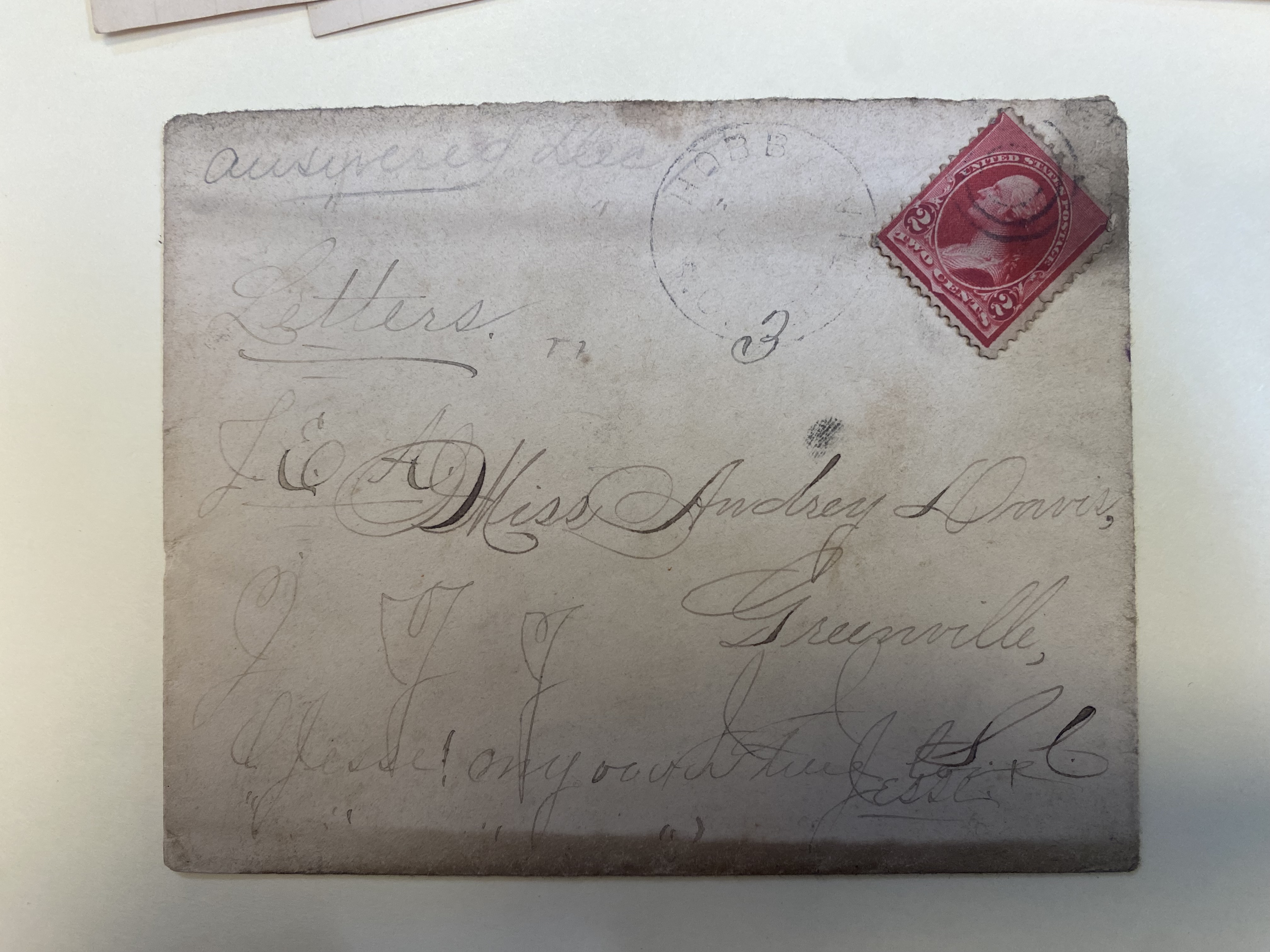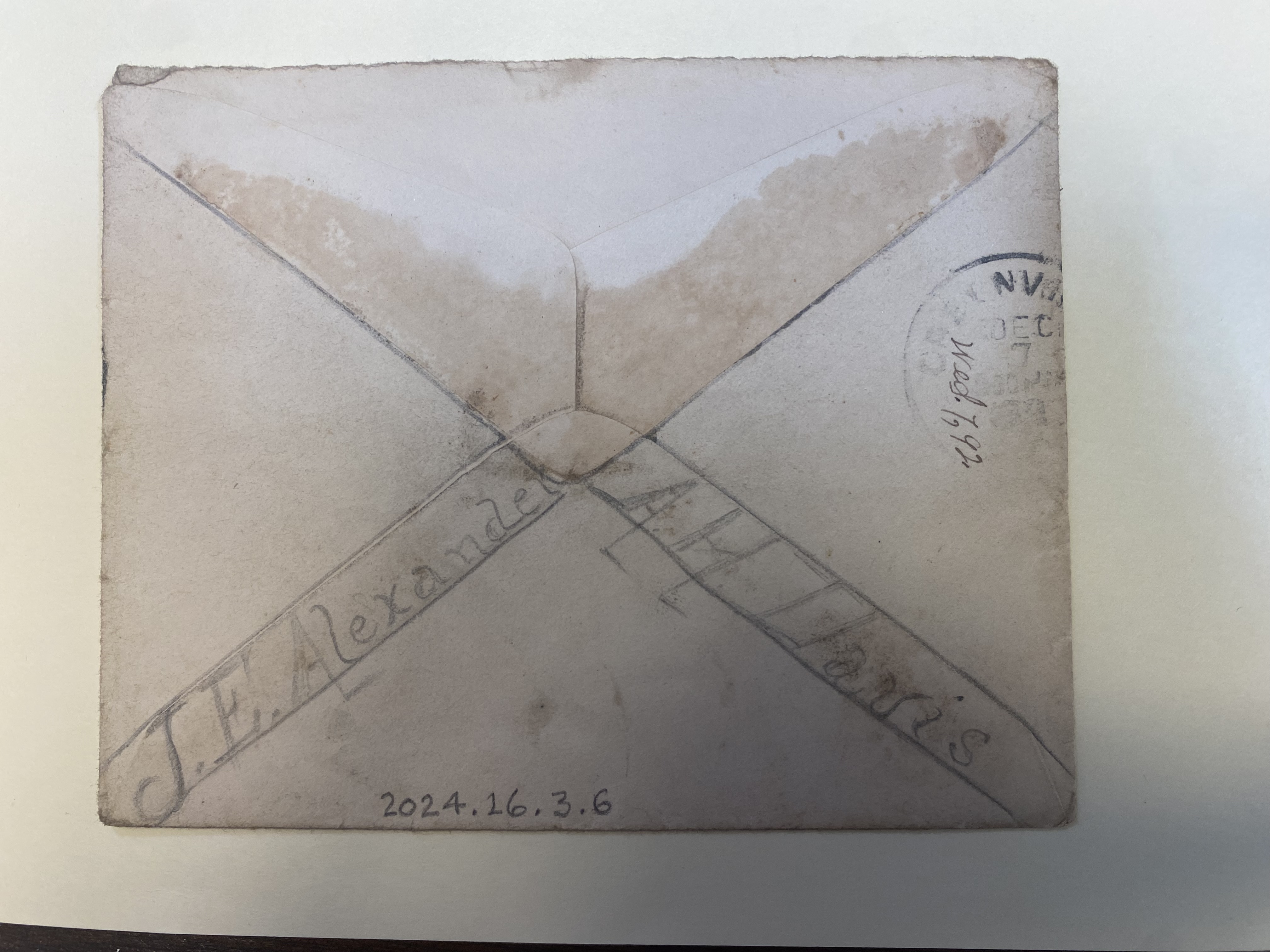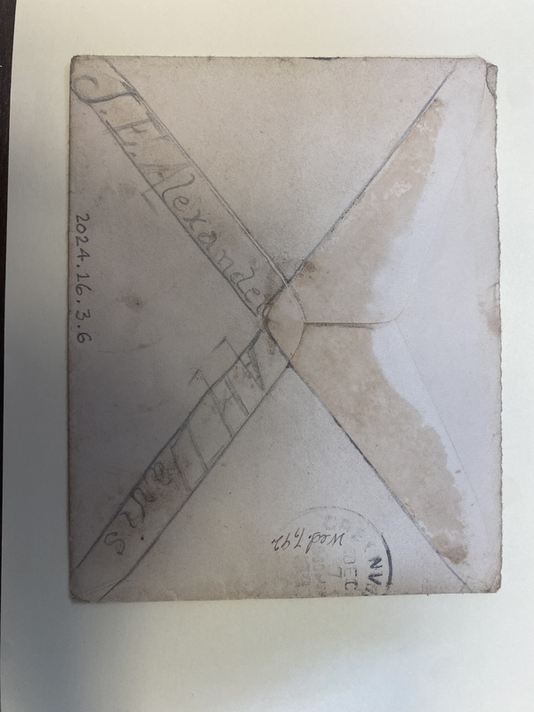 Part of Envelope: Dec. 7, 1892. J Earle Alexander to Audrey Davis