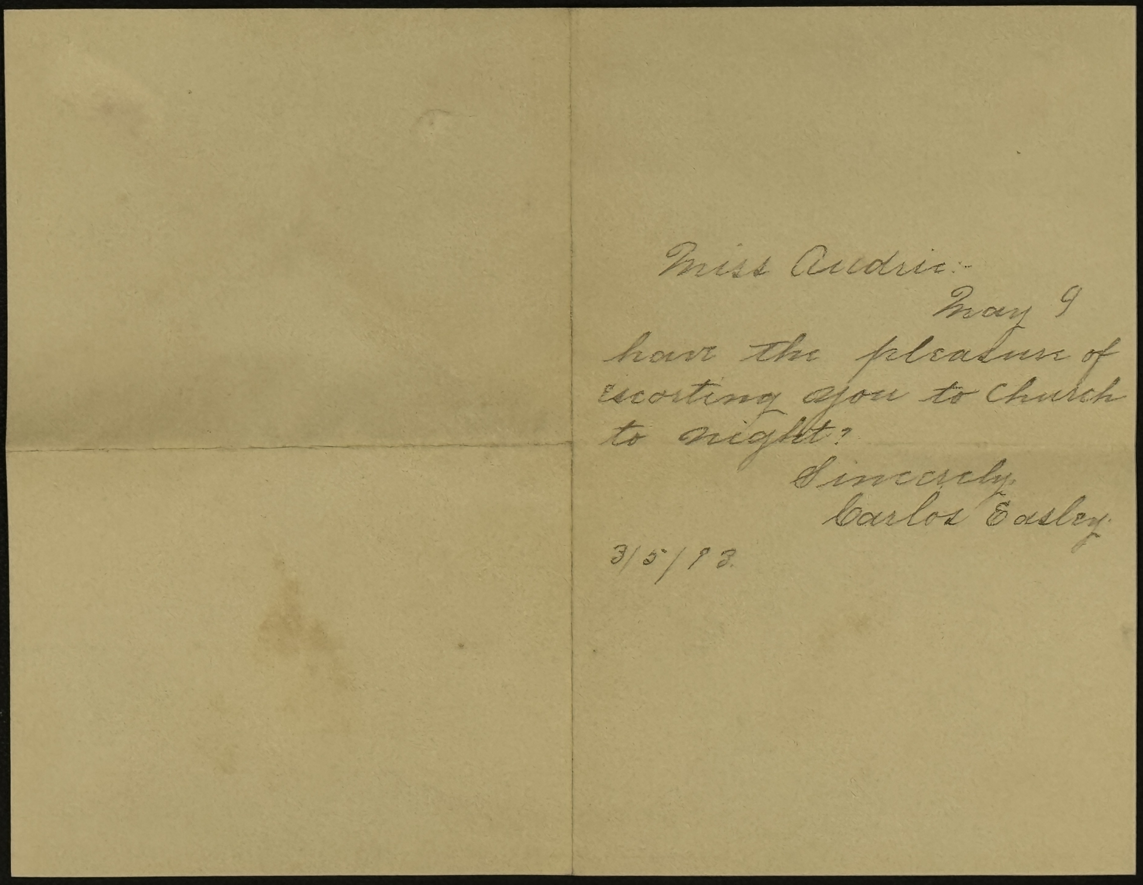 - Letter: March 5, 1893. Carlos Easley to Audrey Davis