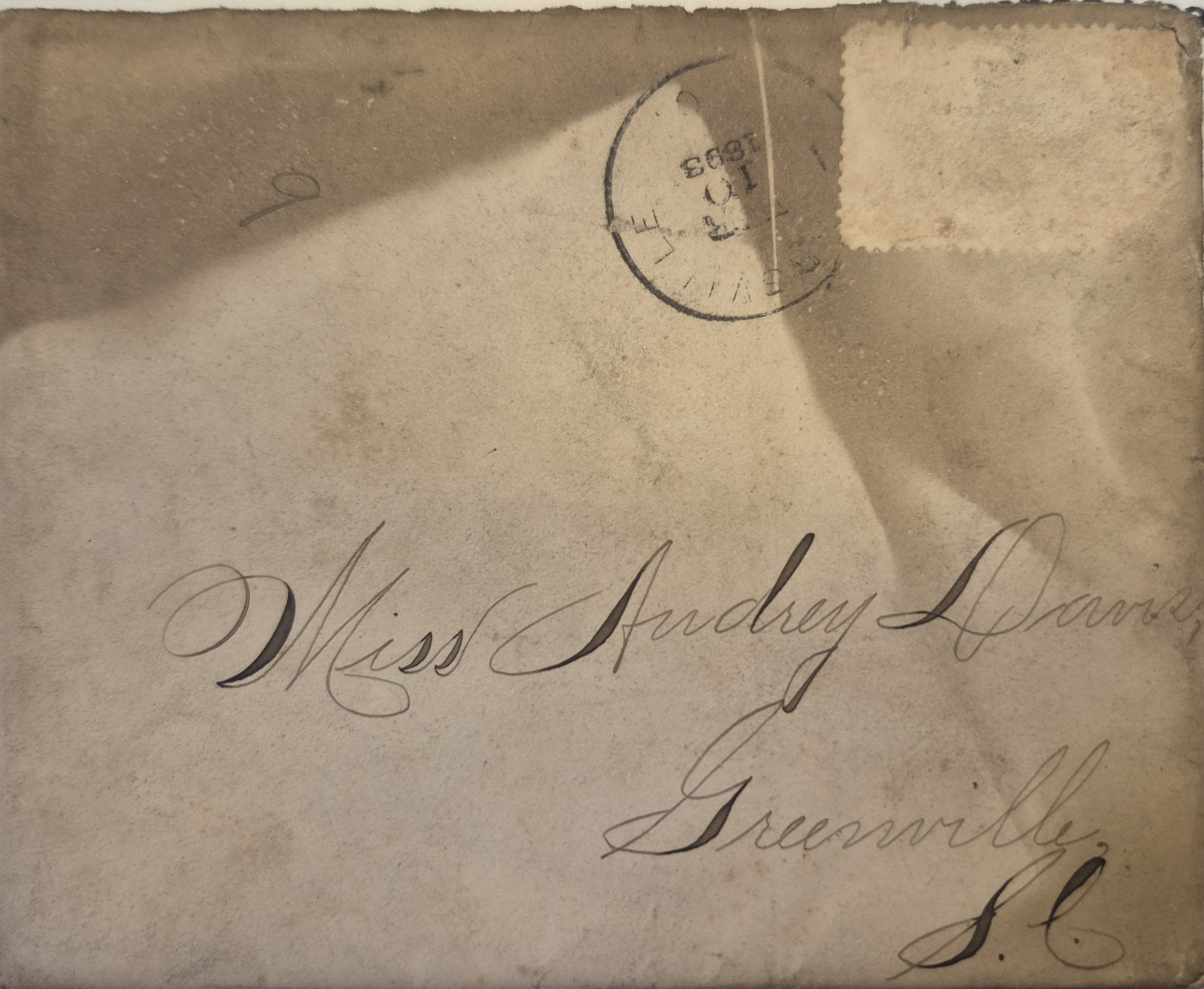 Part of Envelope: Mar. 10, 1893. J. Earle Alexander to Audrey Davis