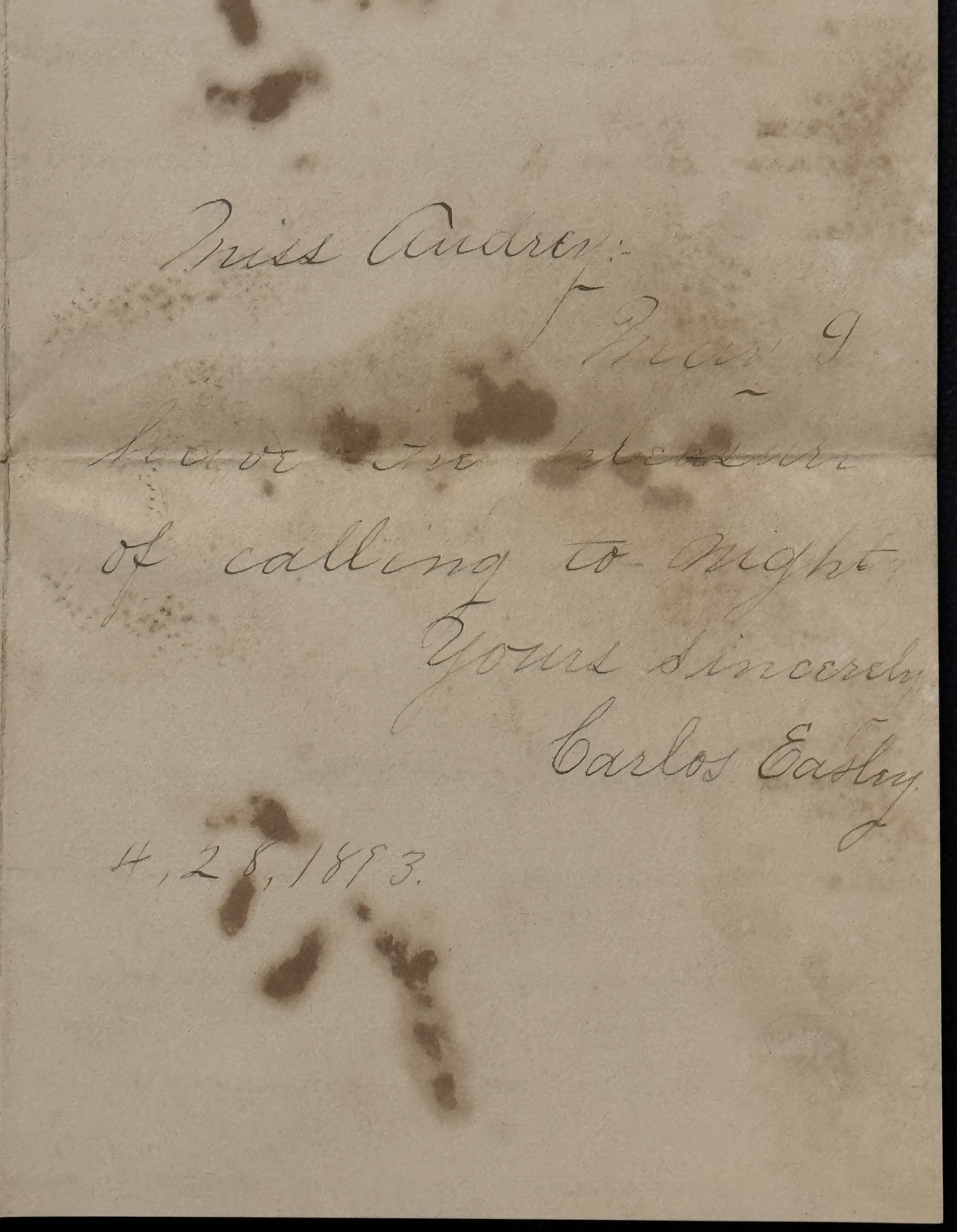 - Letter: April 28, 1893. Carlos Easley to Audrey Davis