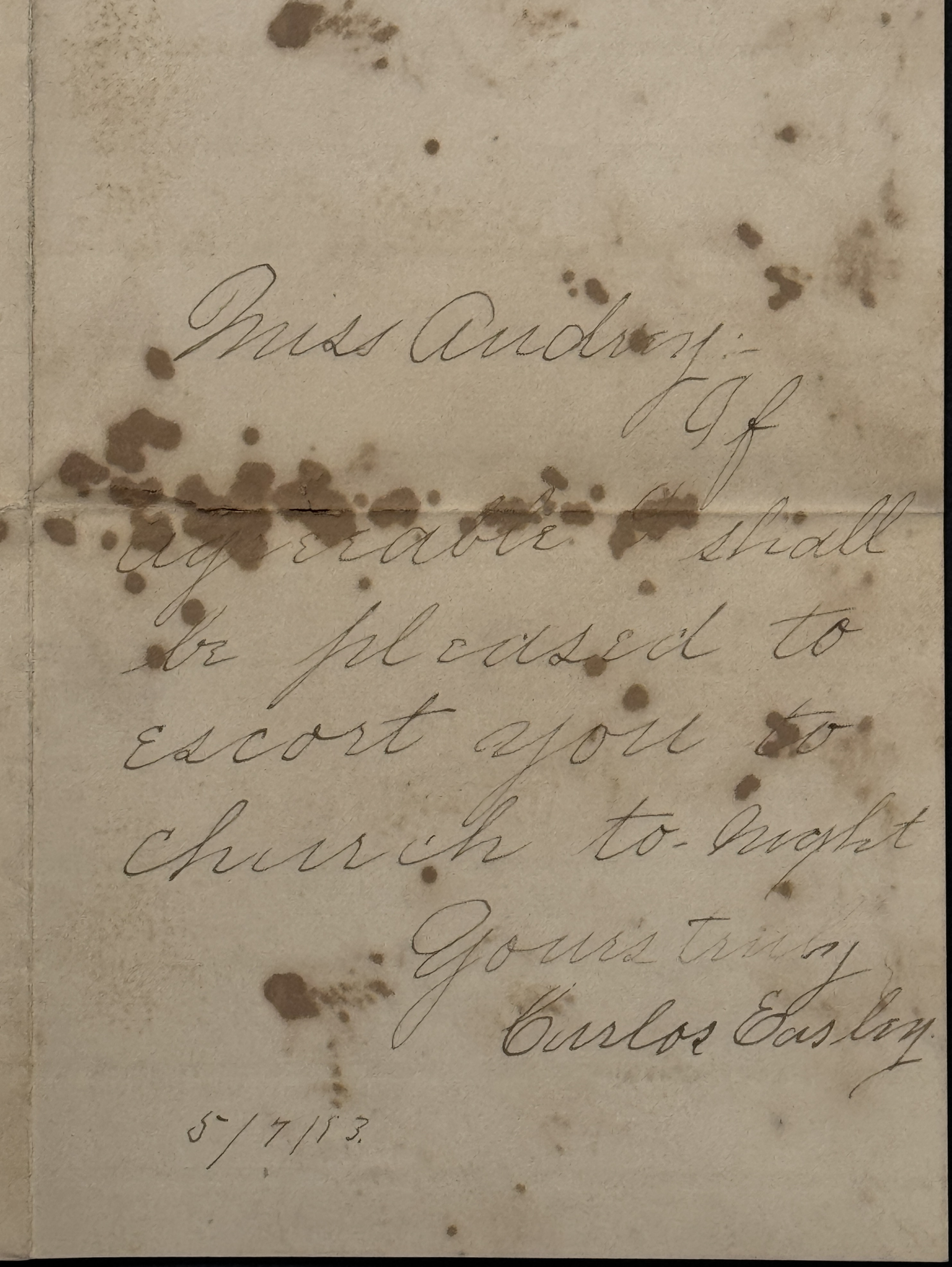- Letter: May 7, 1893. Carlos Easley to Audrey Davis
