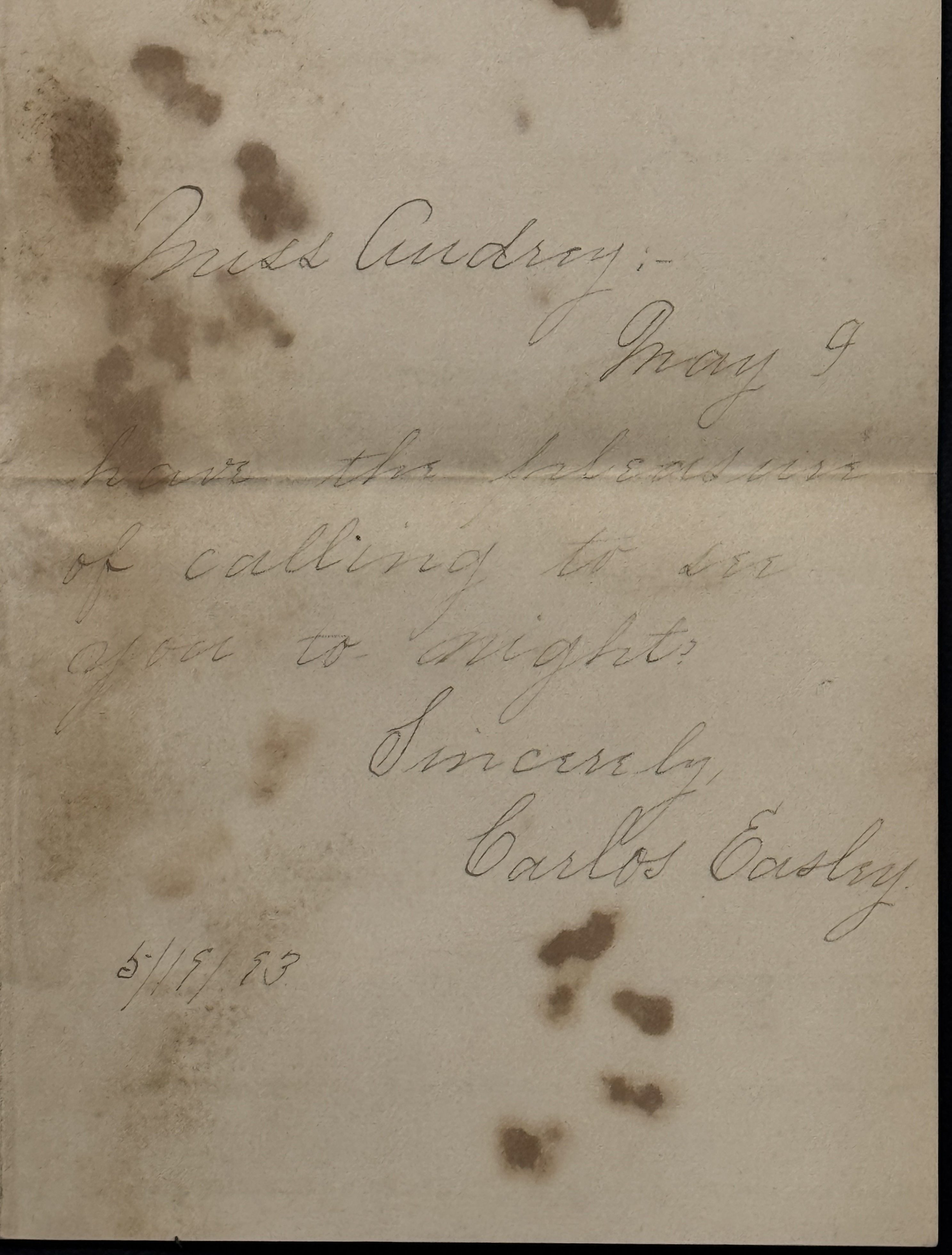 - Letter: May 19, 1893. Carlos Easley to Audrey Davis