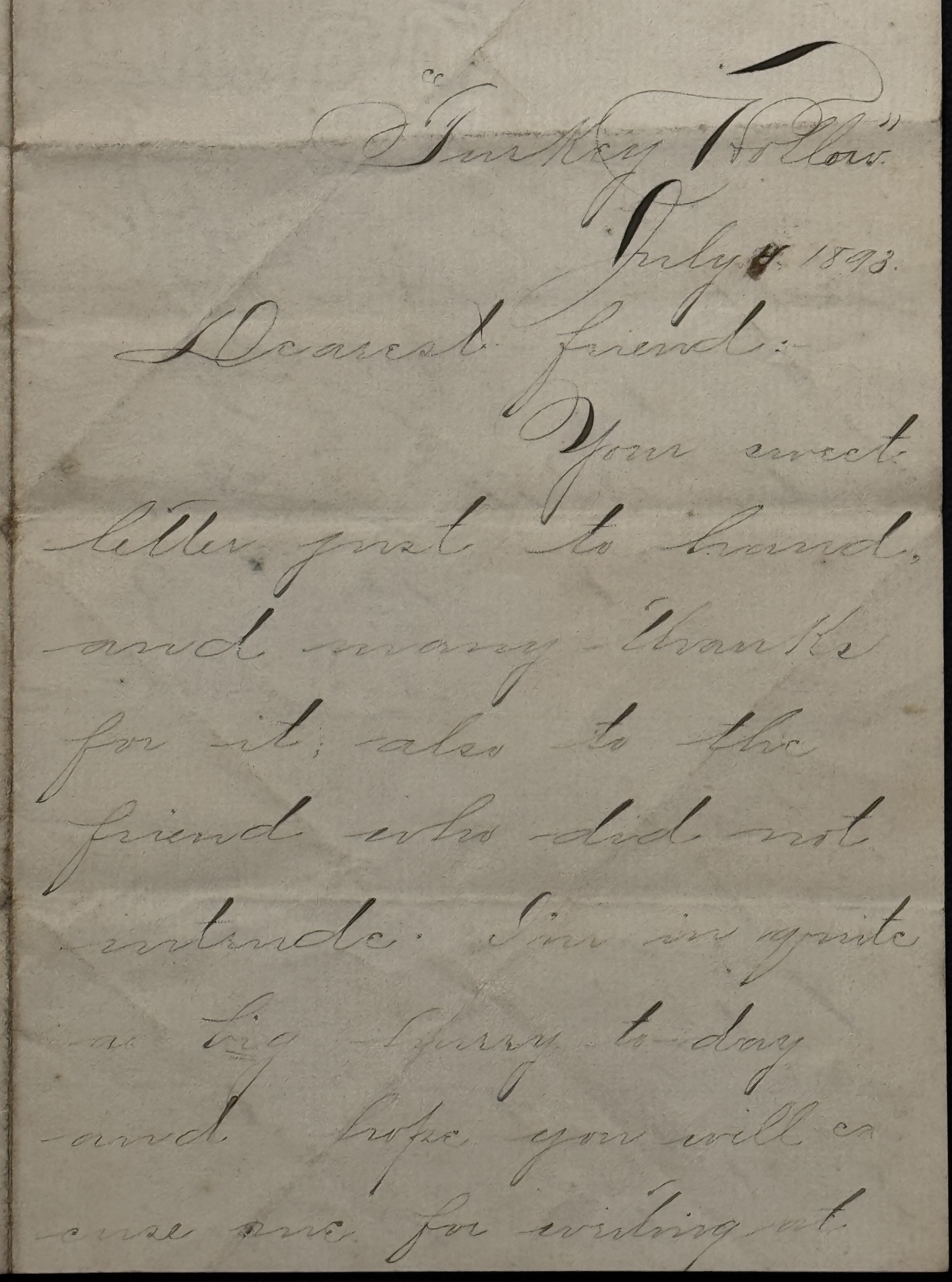 Part of Letter: July 4, 1893. J. Earle Alexander to Audrey Davis
