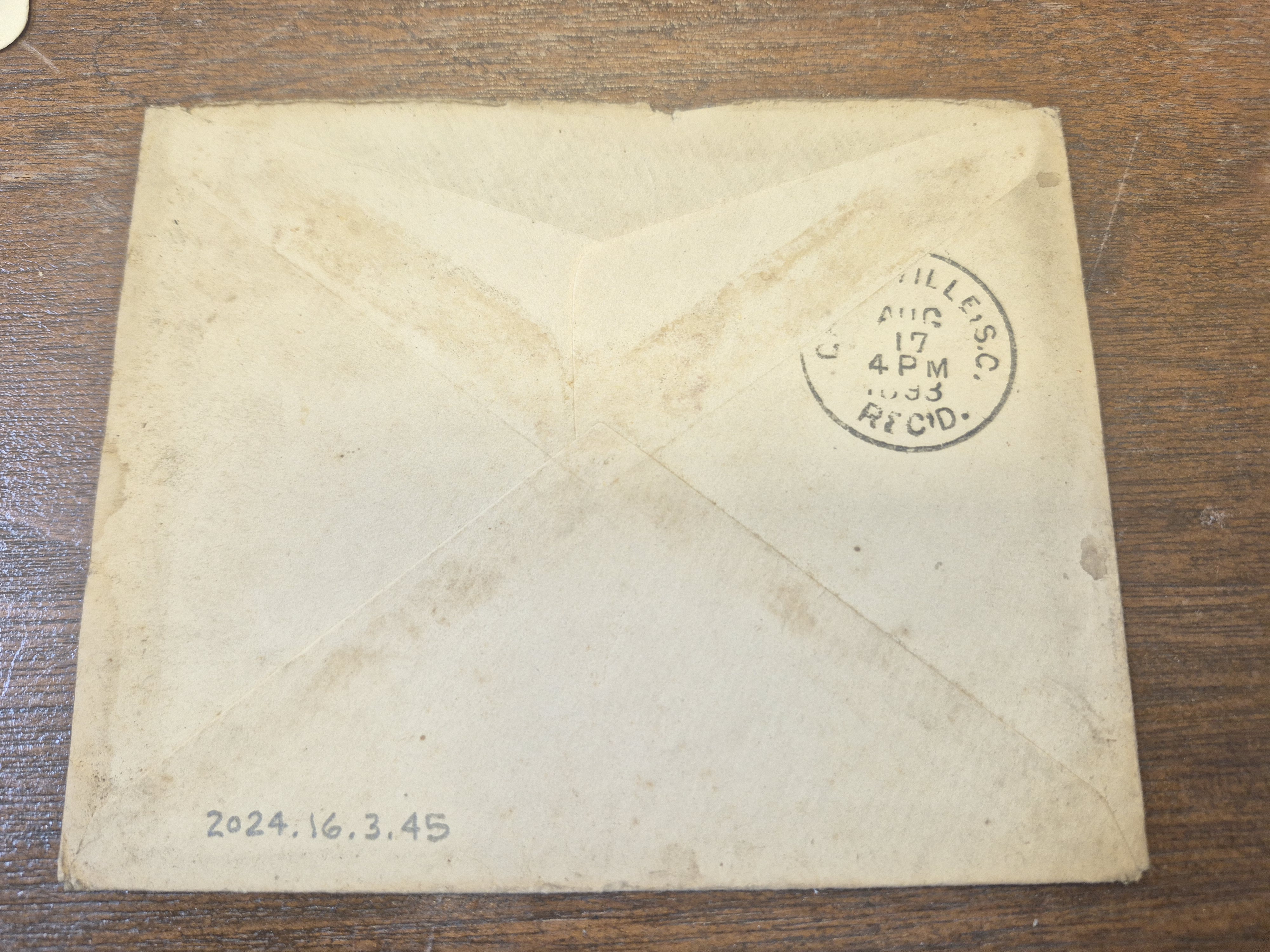 Part of Envelope: Aug. 17, 1893. J. Earle Alexander to Audrey Davis
