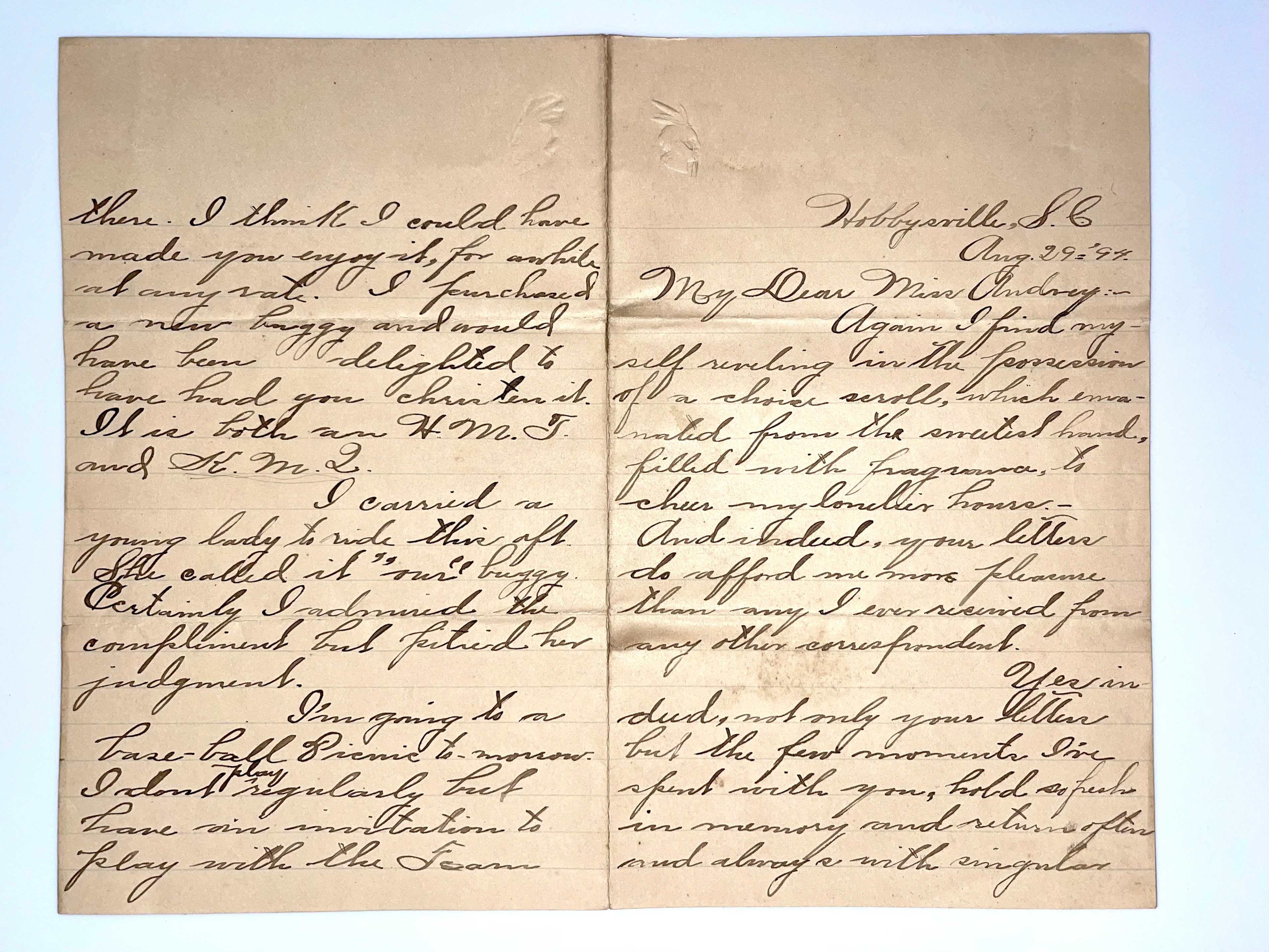 Letter: Aug. 29, 1894. J. Earle A. to Audrey Davis
