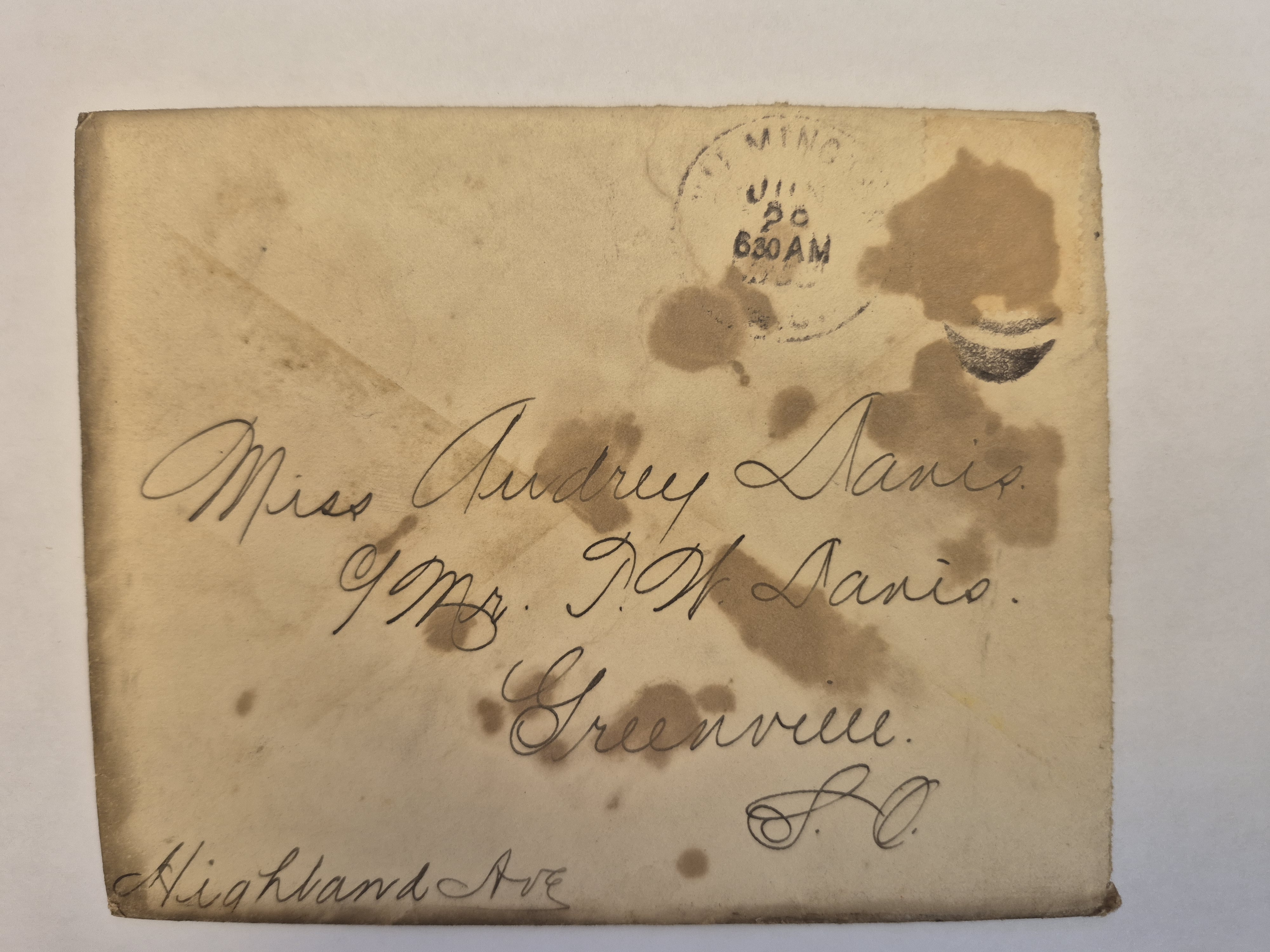 - Envelope: June 29, 1895. "Cousin Tots" to Audrey Davis