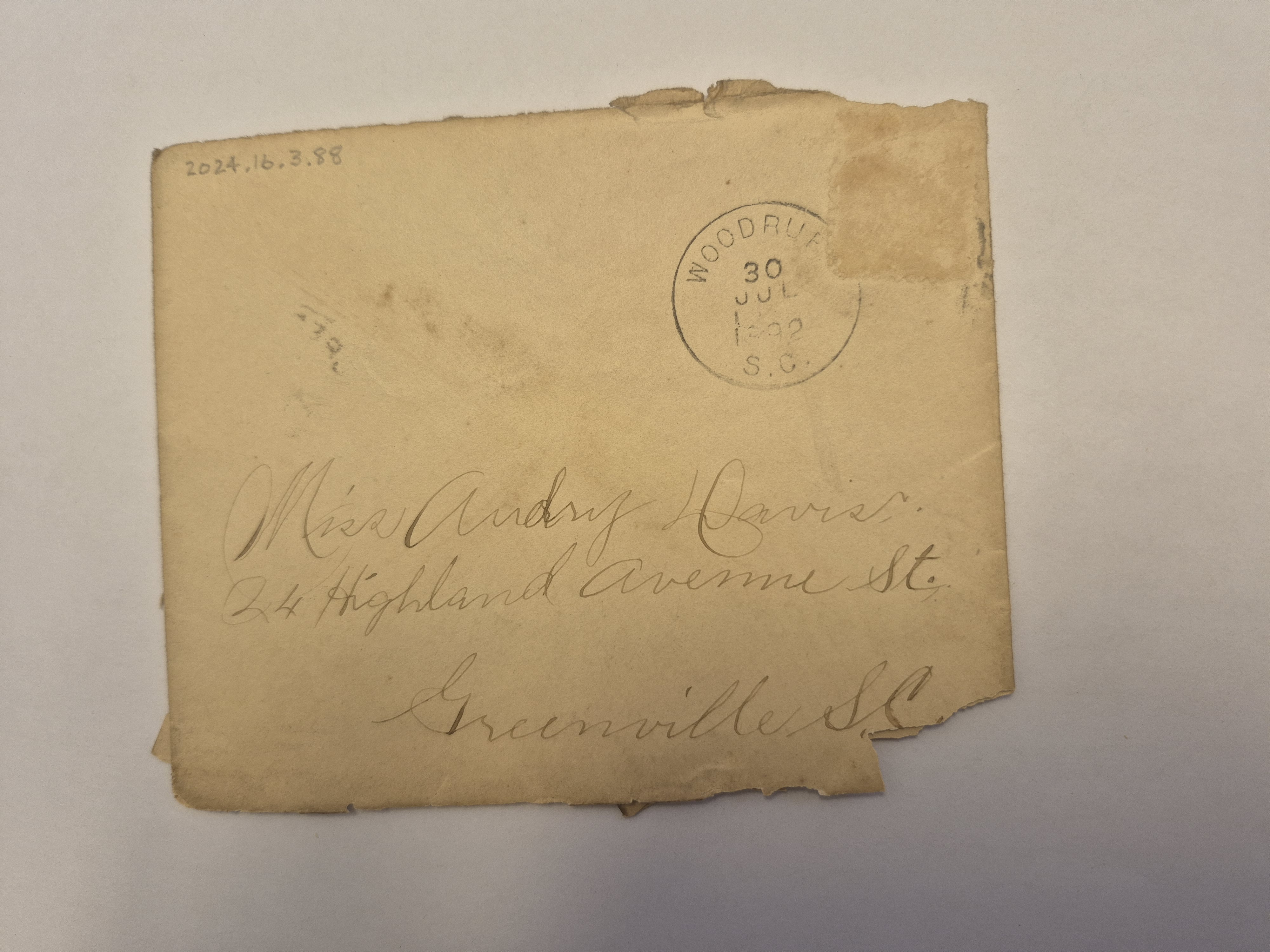 - Envelope: Jul. 30, 1895. M. A. Drummond to Audrey Davis