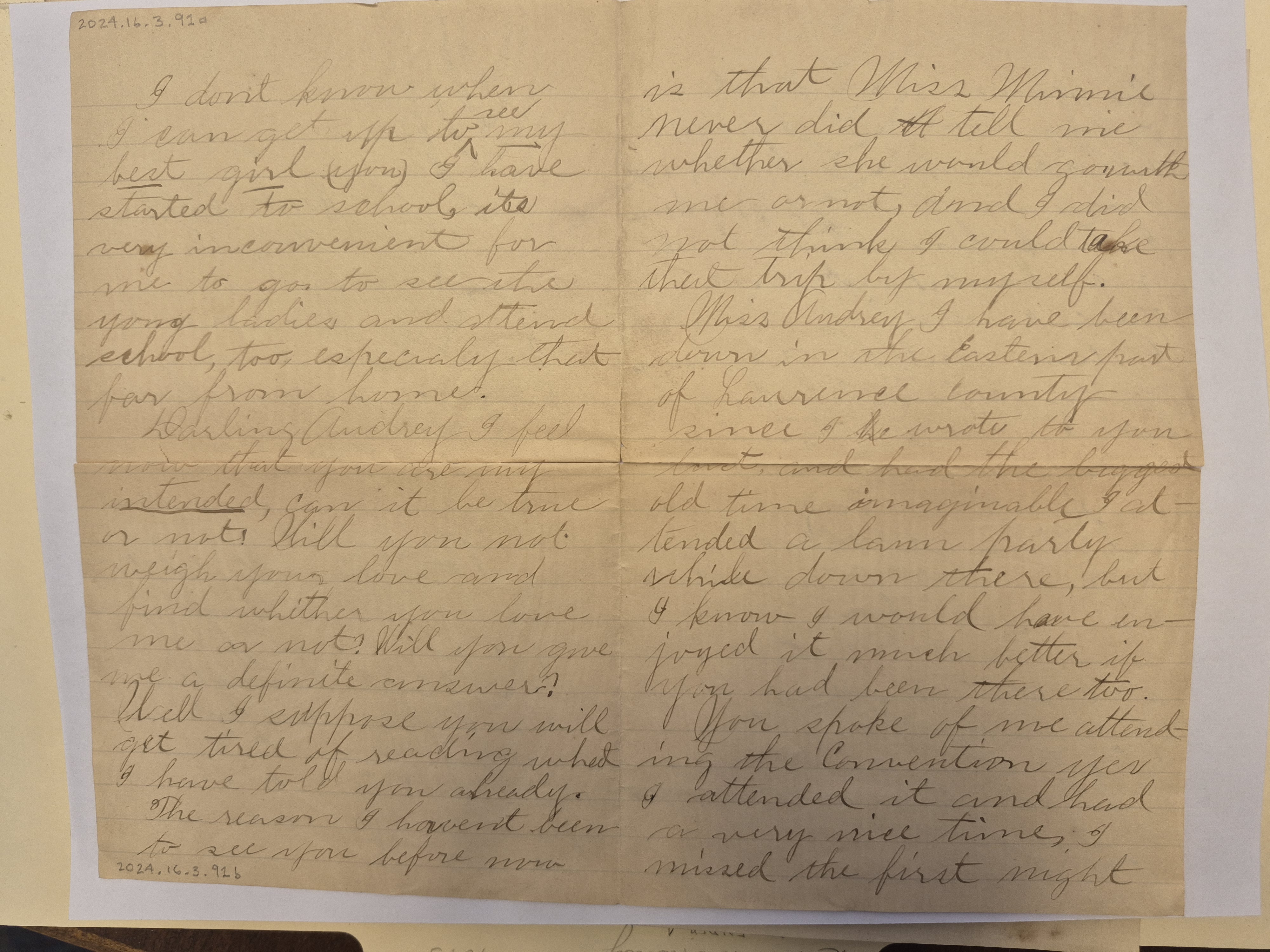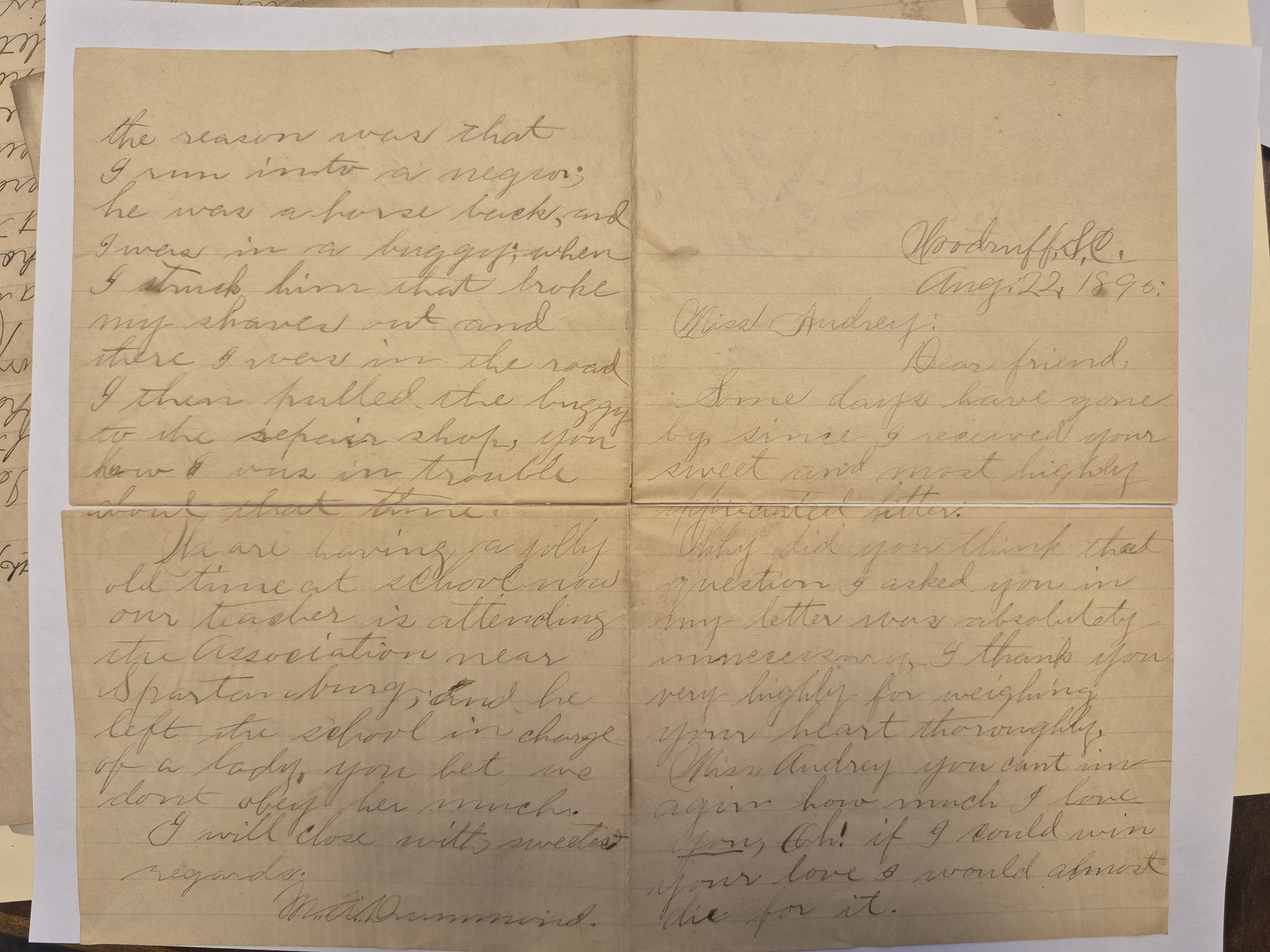 Part of Letter: Aug. 22, 1895. M. A. Drummond to Audrey Davis