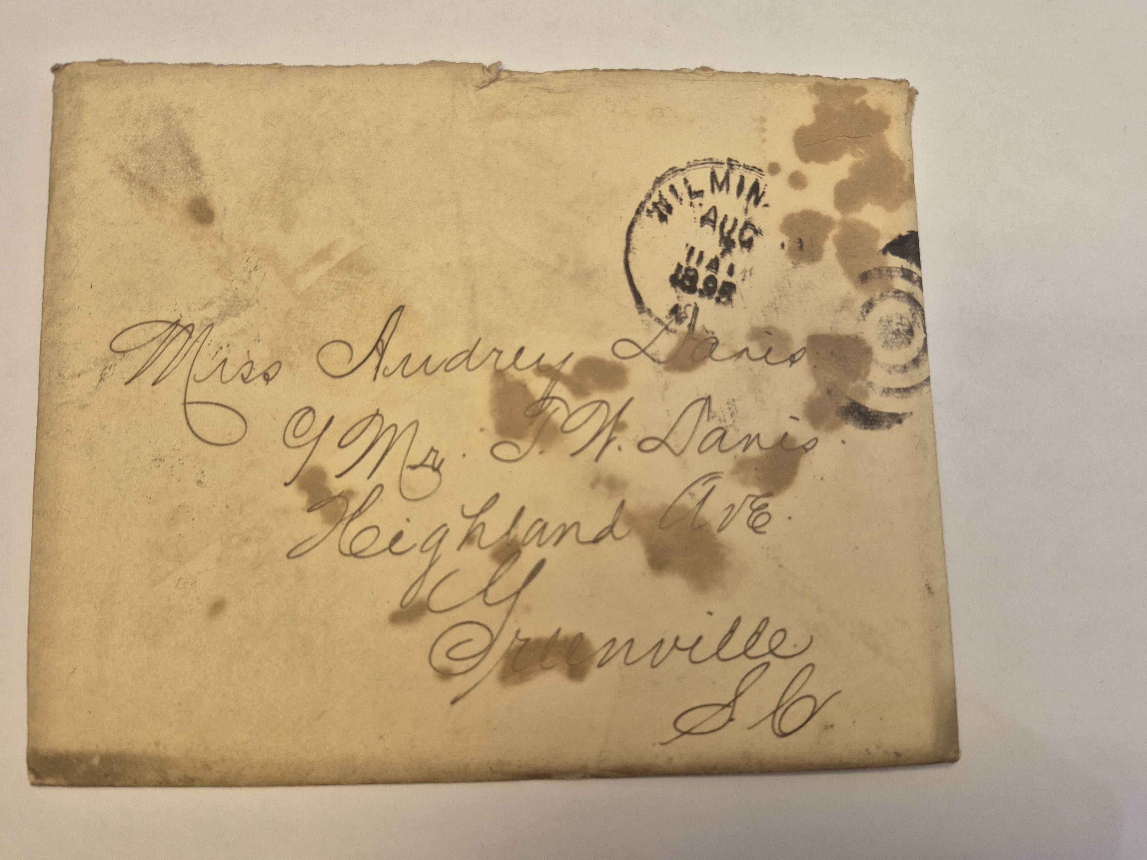 - Envelope: Aug. 7, 1895. Cousin Tots to Audrey Davis