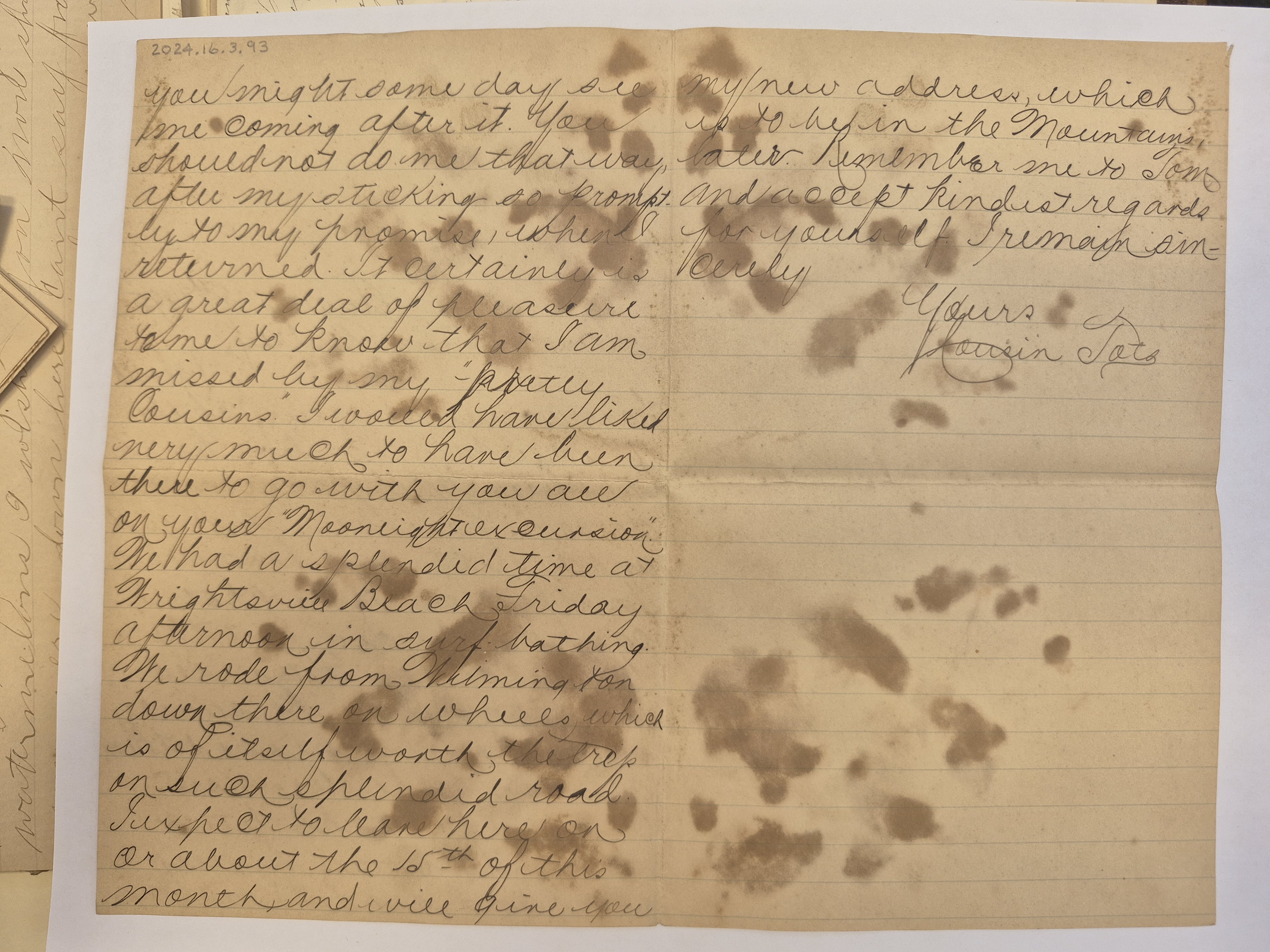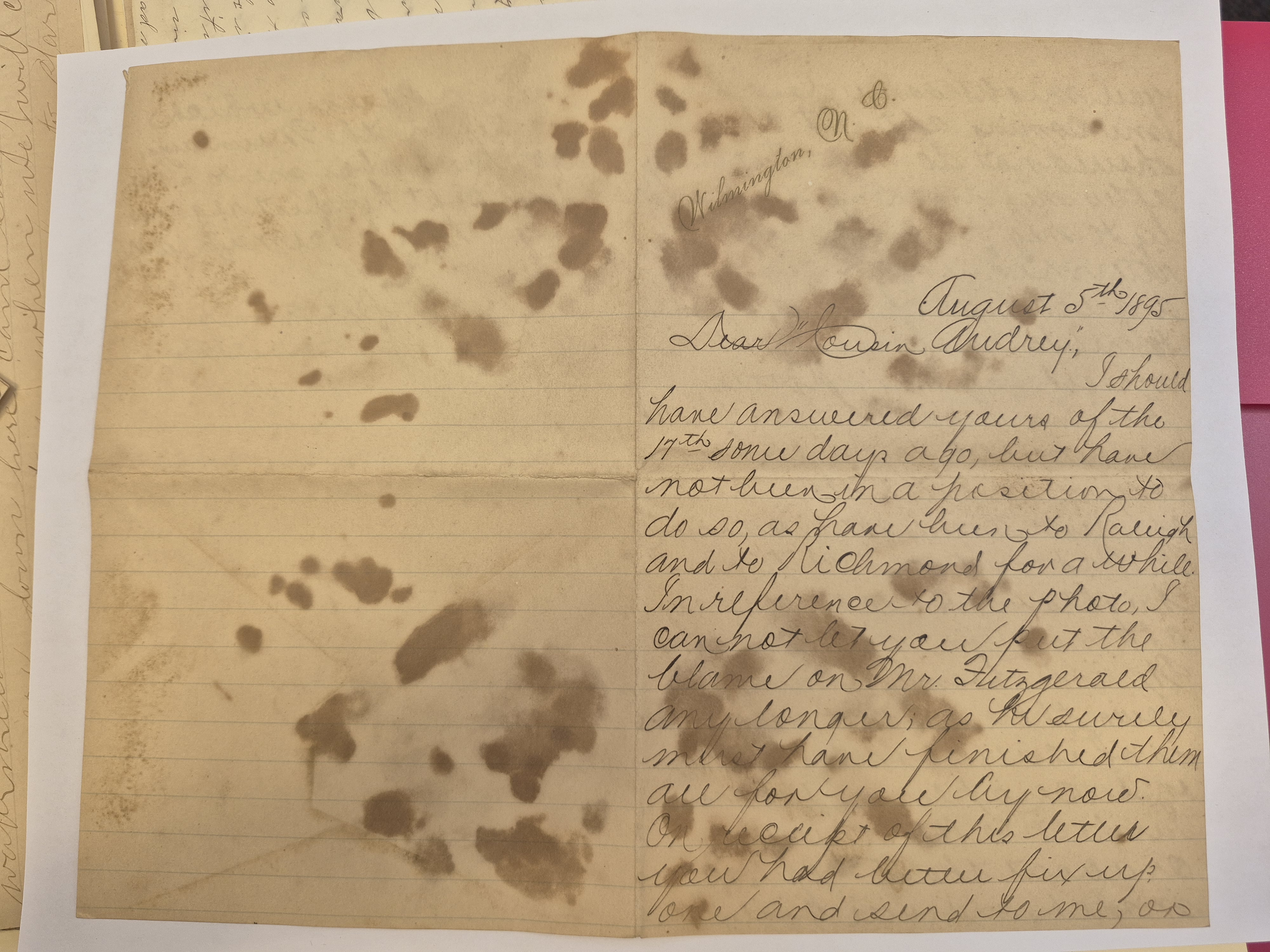 Letter: Aug. 5, 1895. Cousin Tots to Audrey Davis