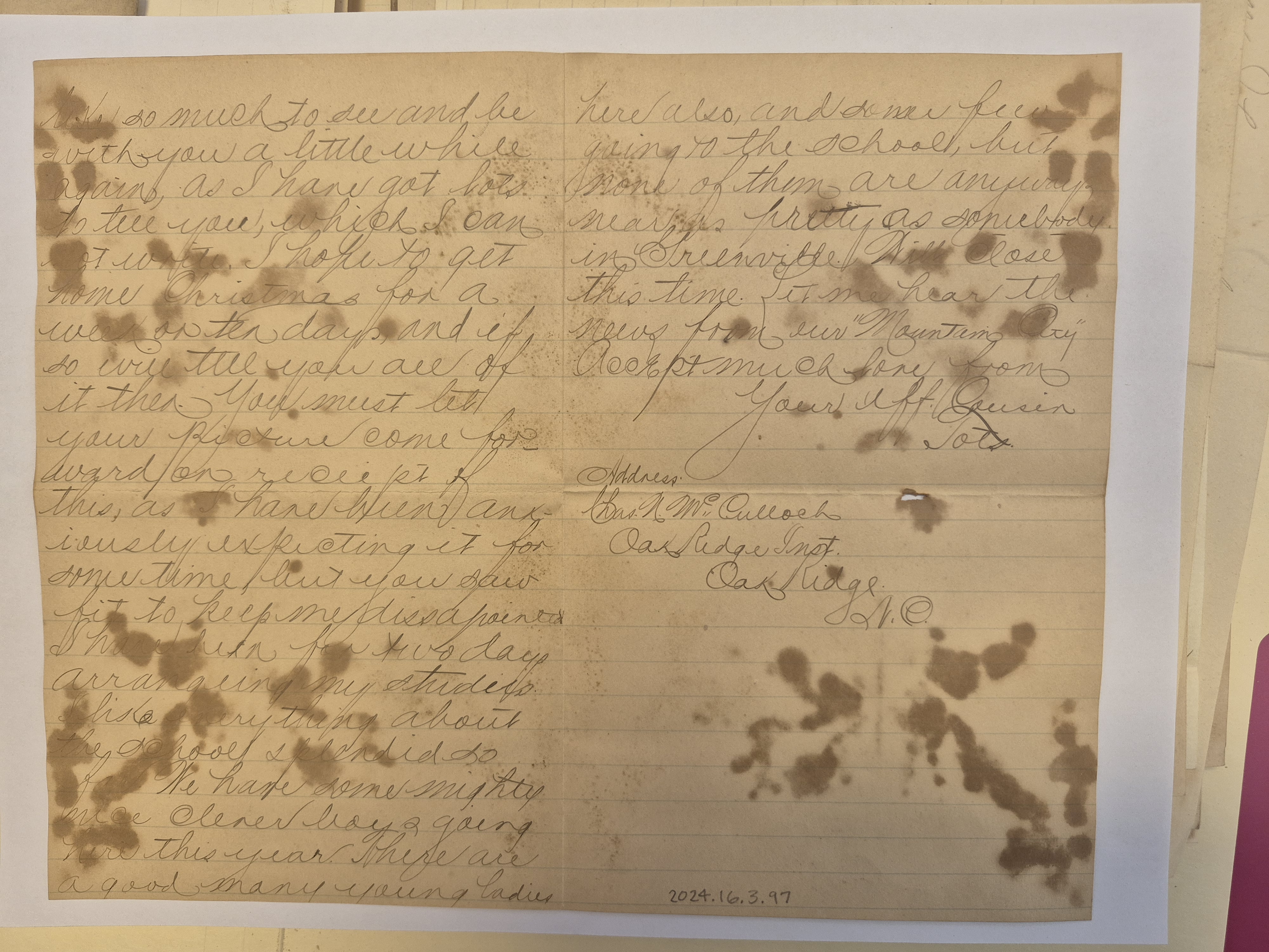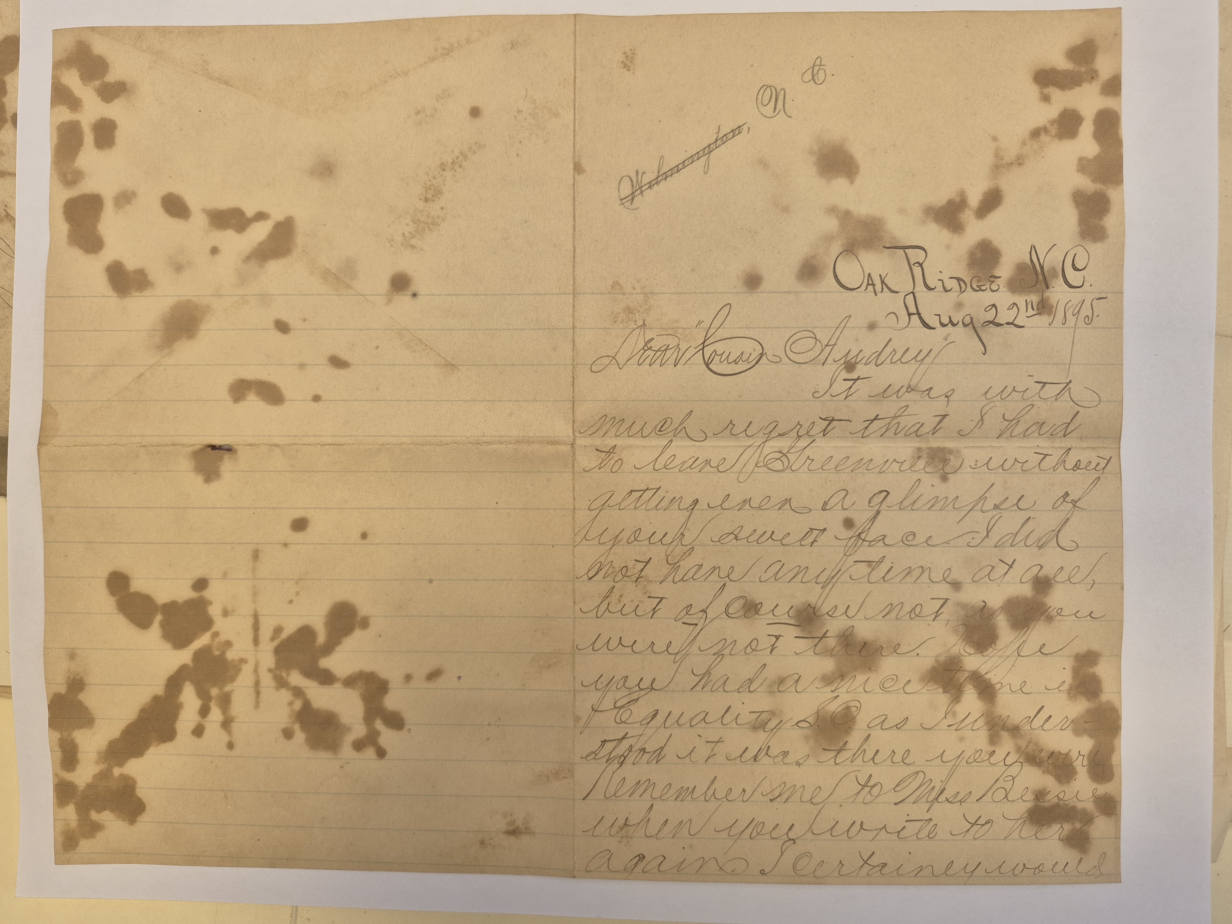 - Letter: Aug. 22, 1895. Cousin Tots to Audrey Davis