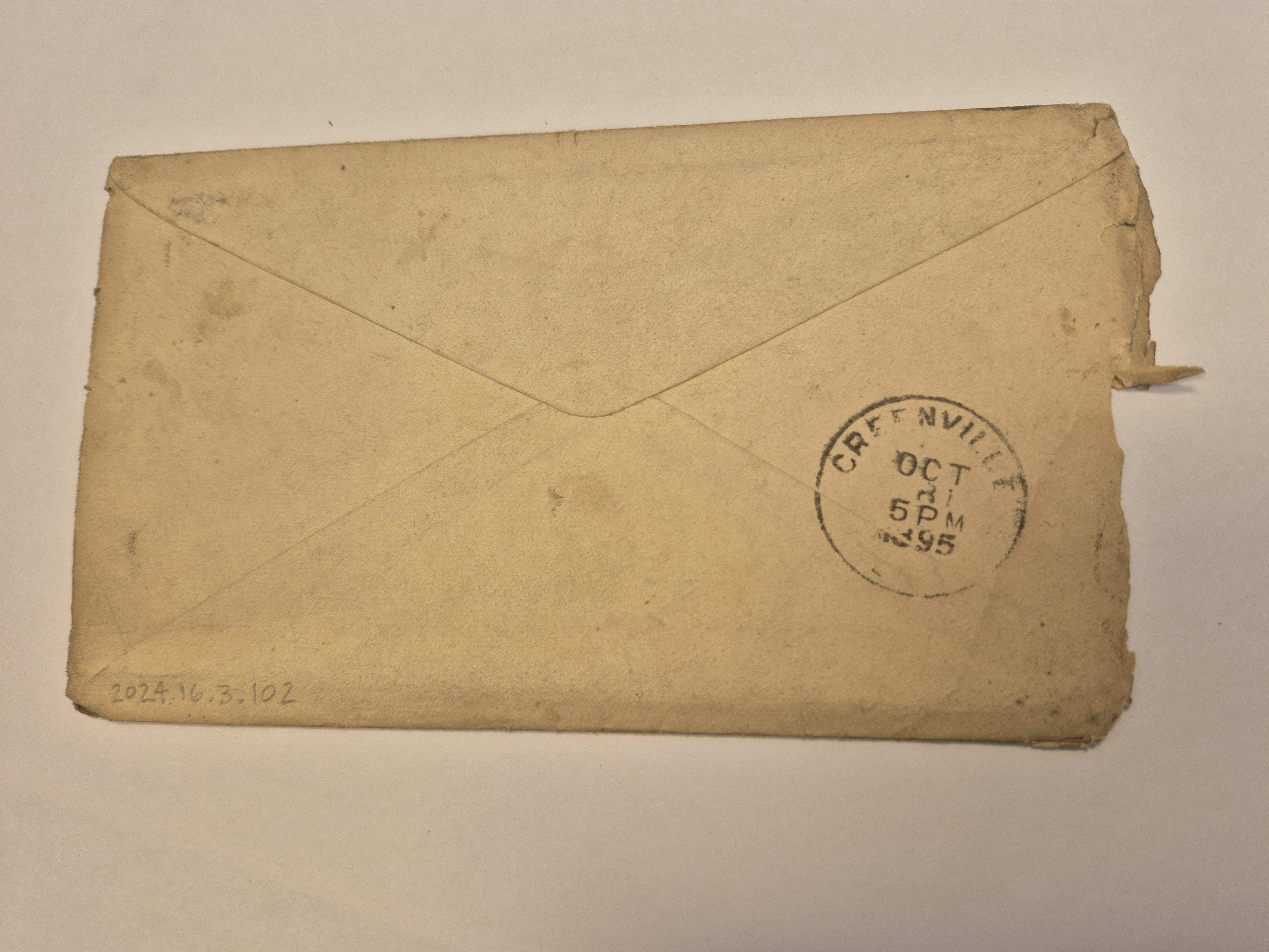 - Envelope: Oct. 8, 1895. Ira to Audrey Davis