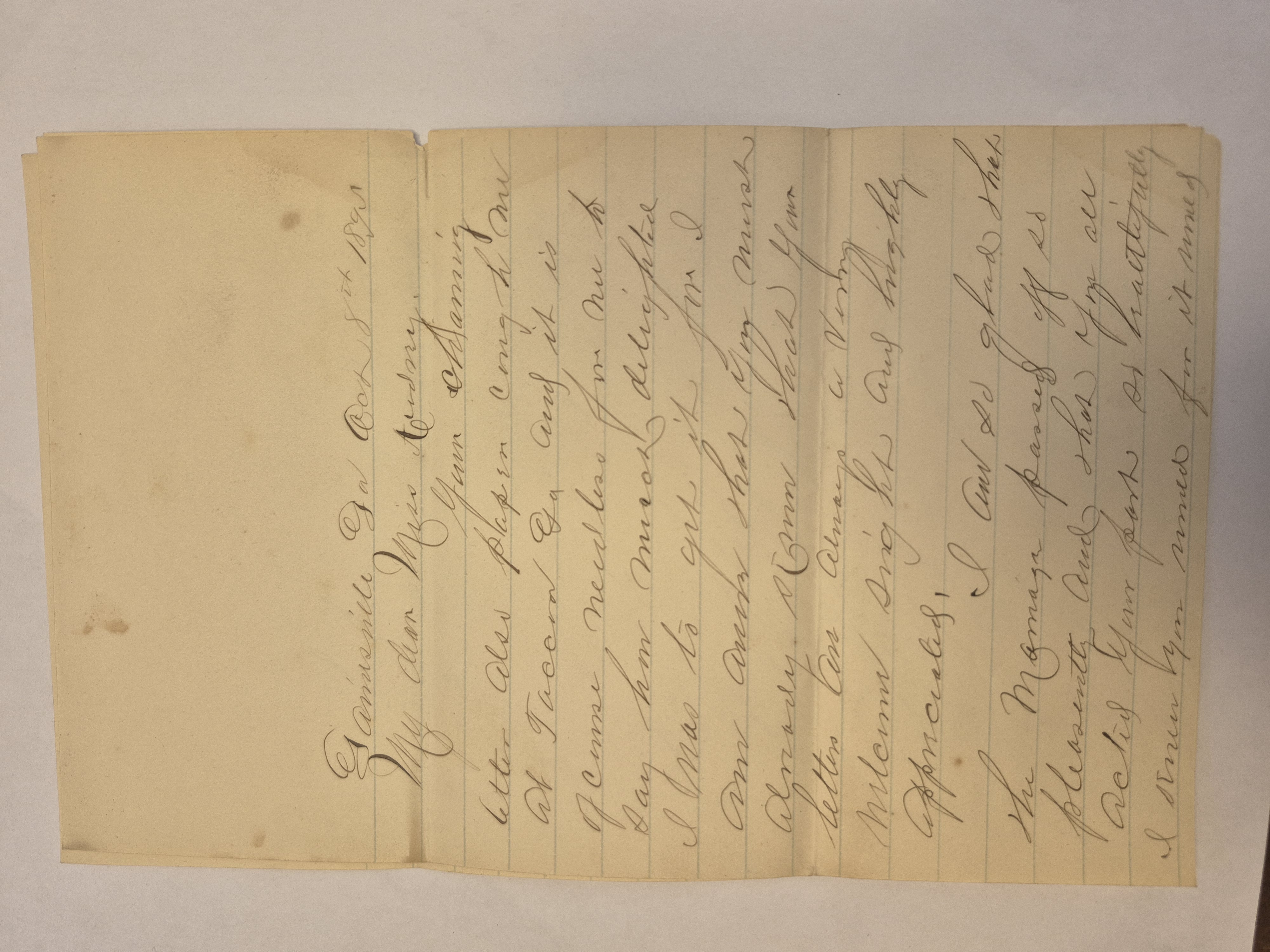 Letter: Oct. 8, 1895. Ira to Audrey Davis