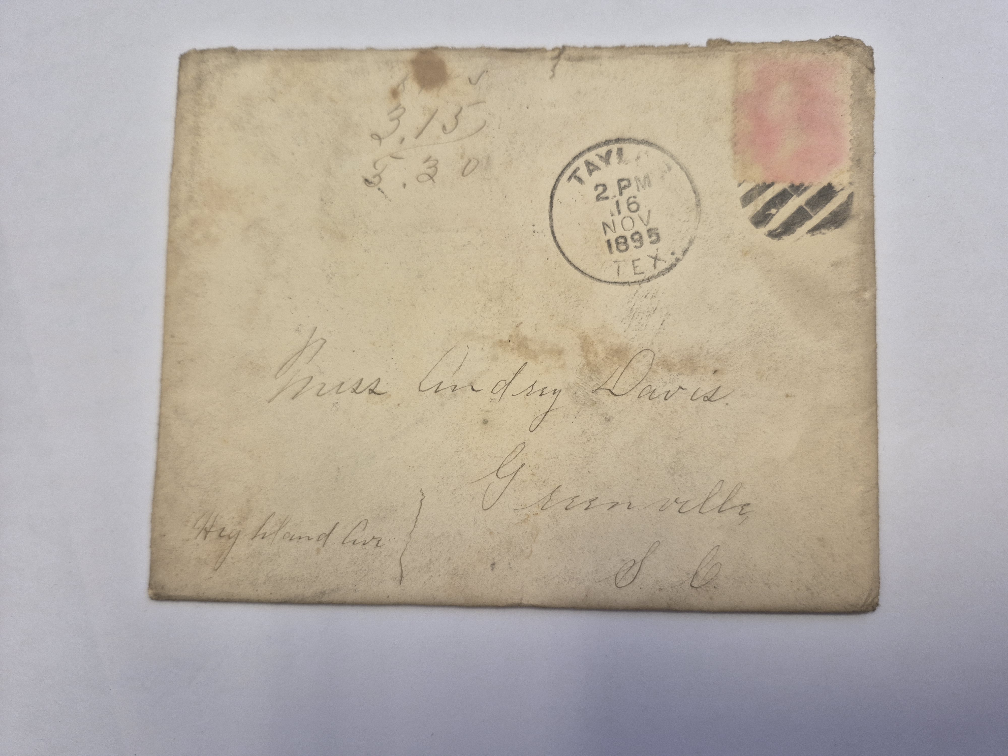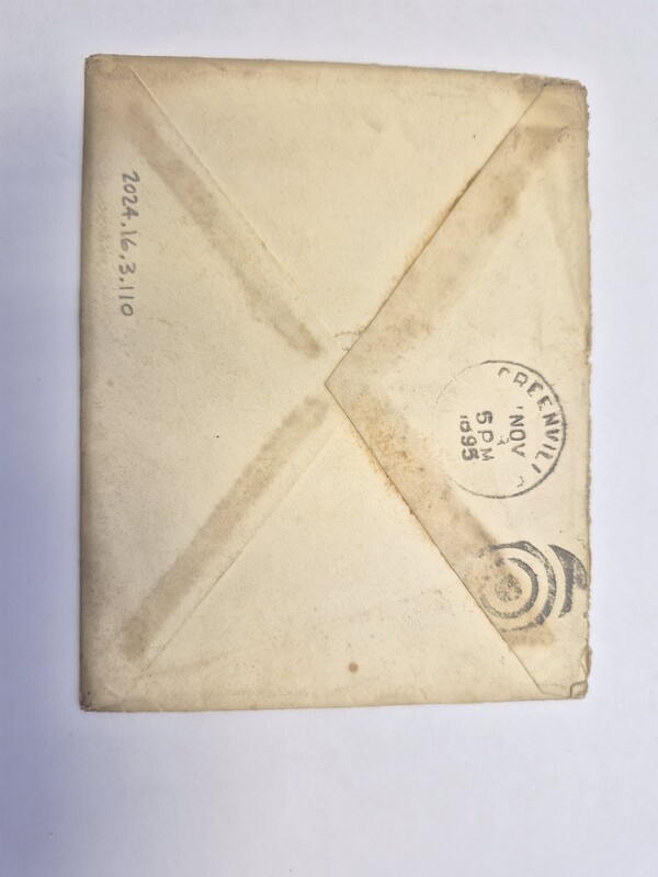 - Envelope: Nov. 16, 1895. Carlos Easley to Audrey Davis