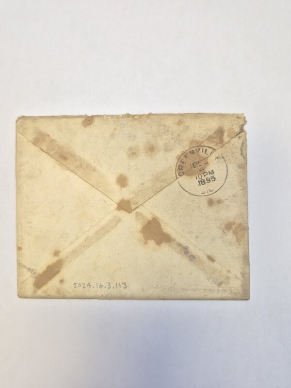 Part of Envelope: Dec. 4, 1895. Carlos Easley to Audrey Davis