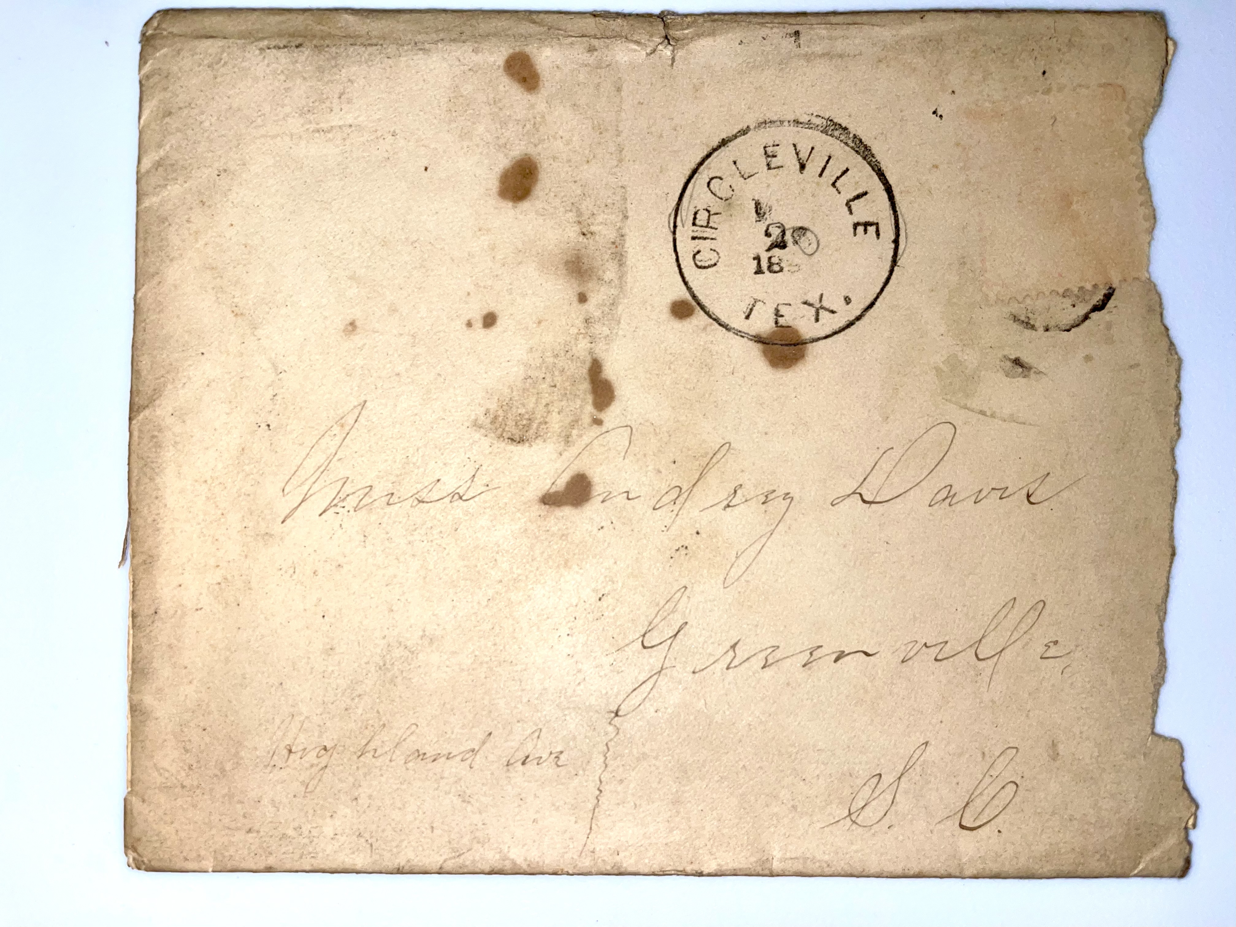 - Envelope: March 23, 1896. Carlos Easley to Audrey Davis
