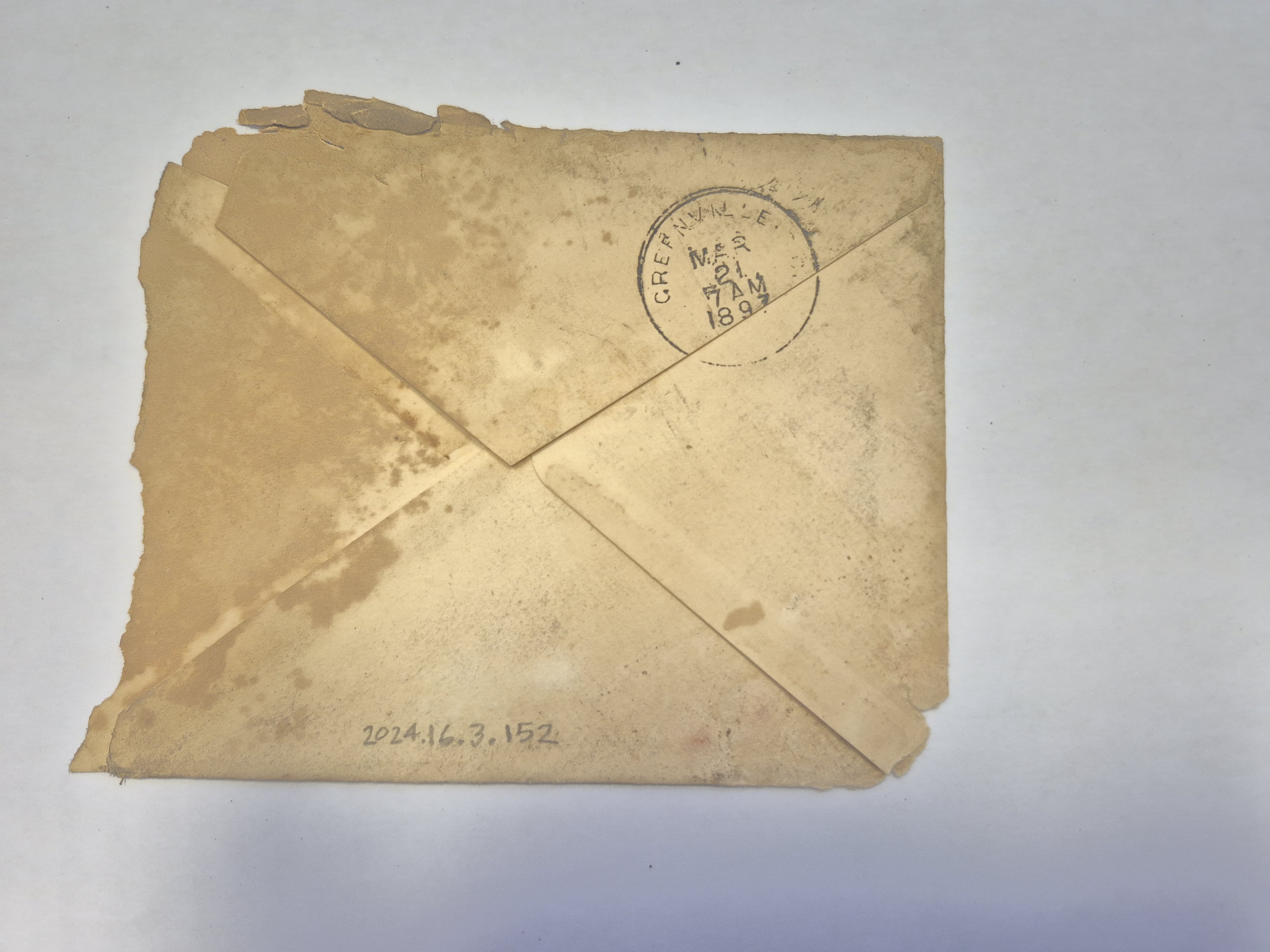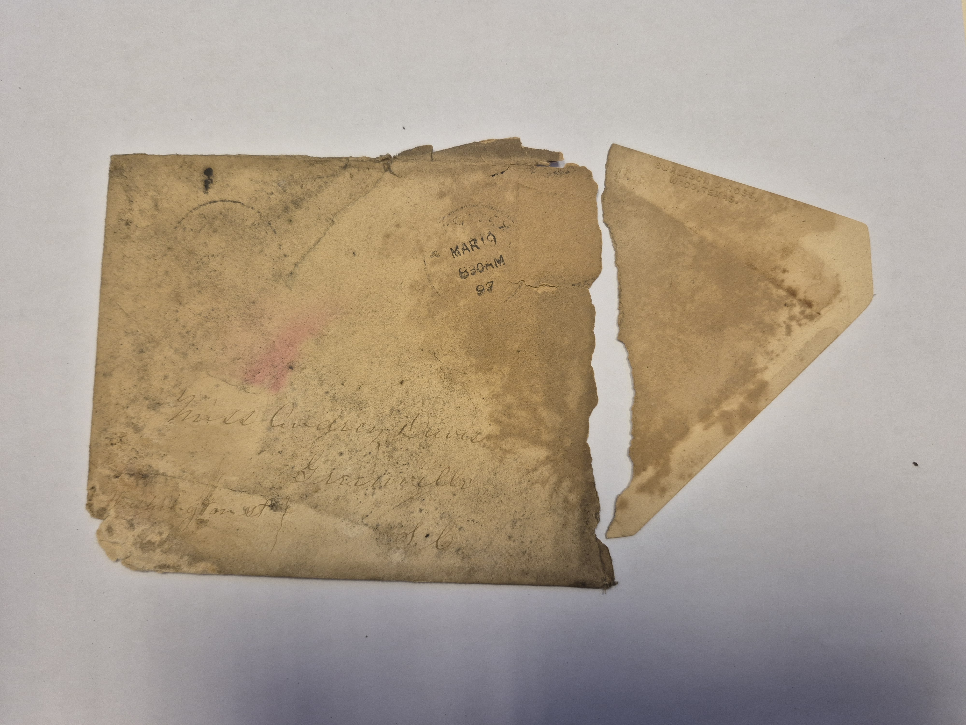 - Envelope: March 19, 1897. Carlos Easley to Audrey Davis