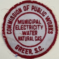 - 3-3/4" fabric embroidered patch; white background, red thread