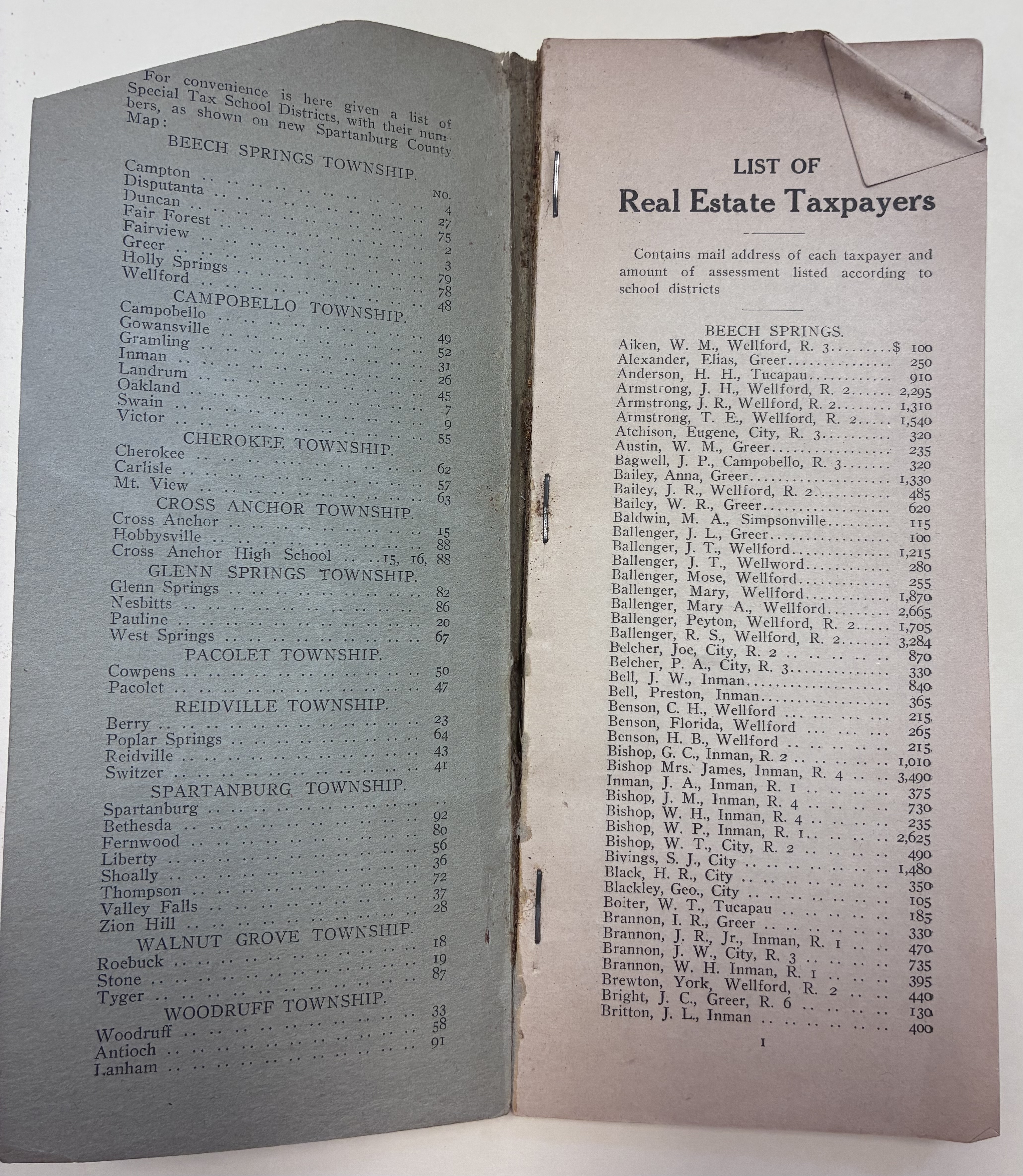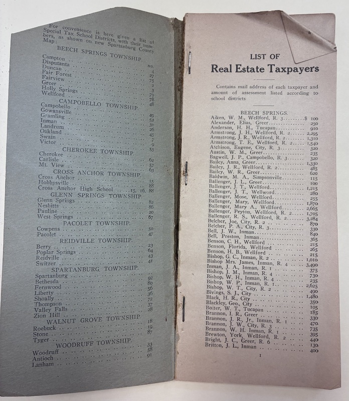 - List of Real Estate Taxpayers of Spartanburg County, November 1910
