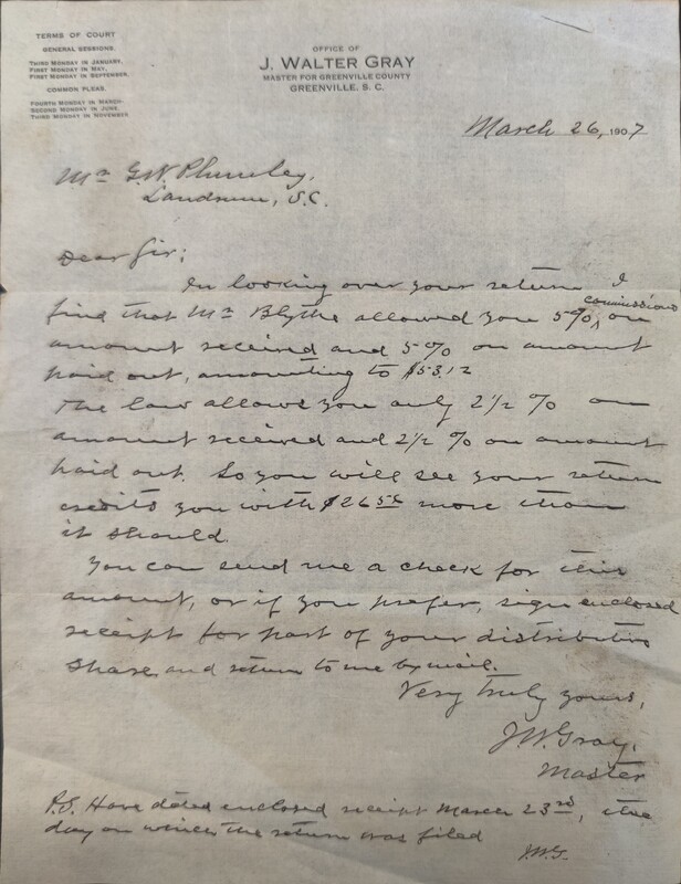 Nannie Landrum Bomar to J. O. Hall and C. W. Morgan.