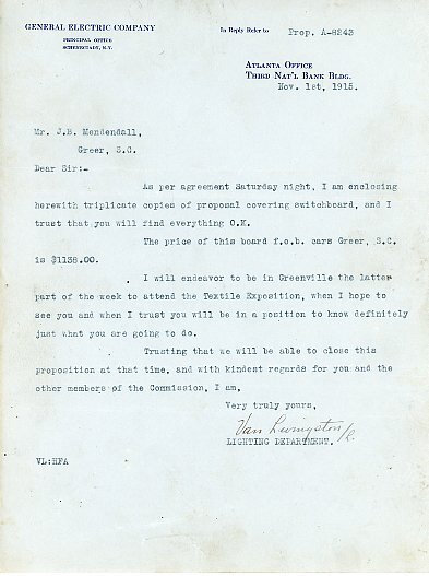 Greer modernization correspondence and records, 1913-1922