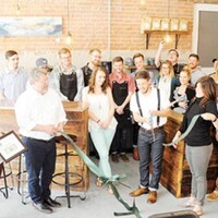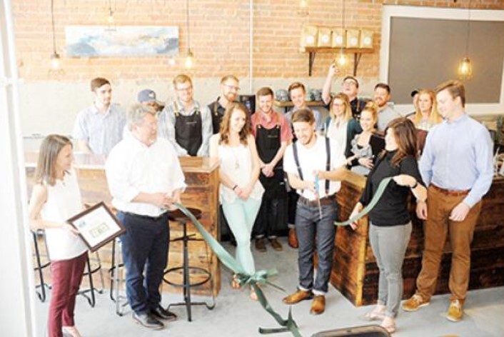 Ribbon-cutting at Barista Alley, 125 East Poinsett, March 31, 2017. -