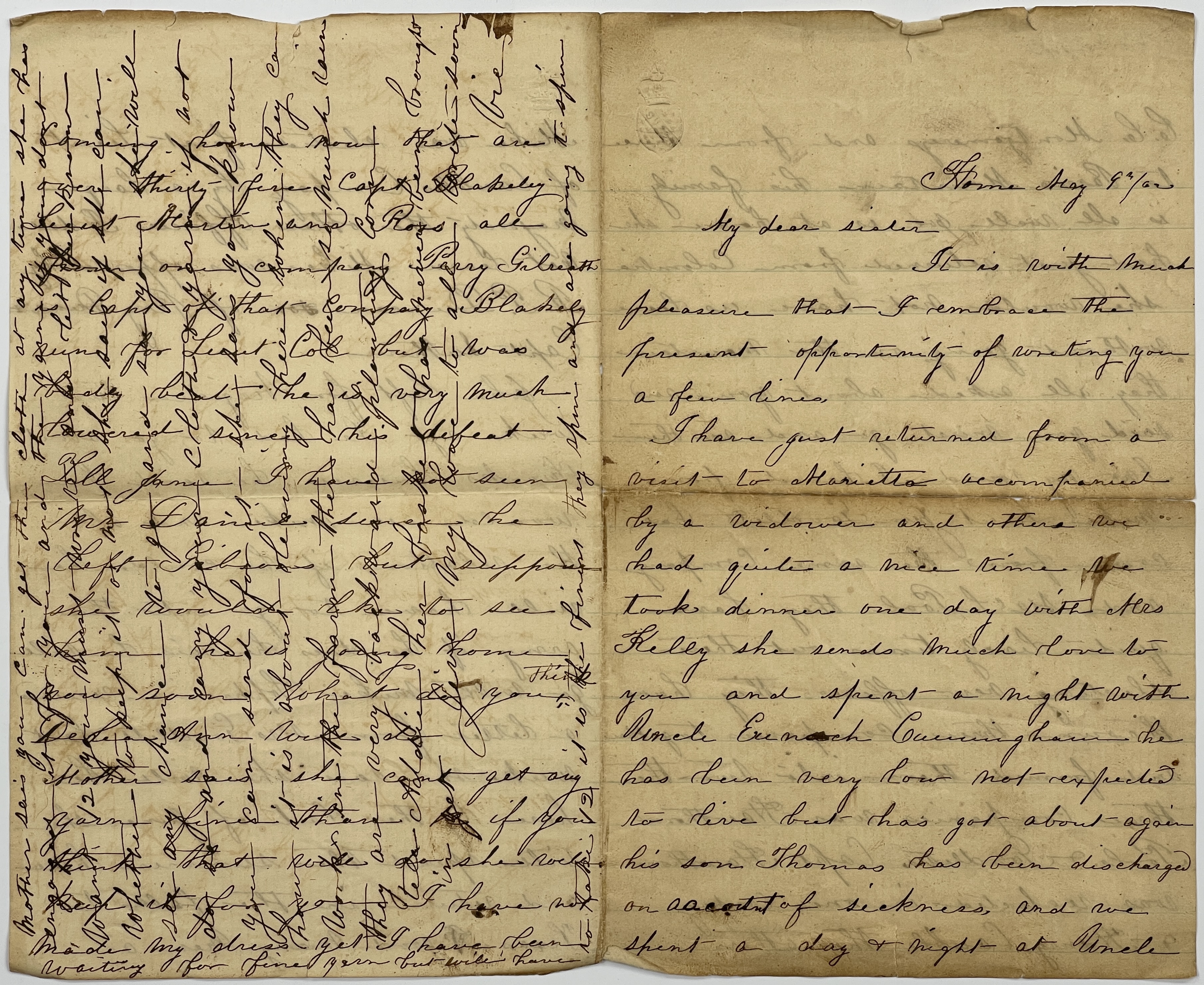 Letter from Victoria Elizabeth Cunningham to Margaret Cunningham Sullivan — May 9, 1862