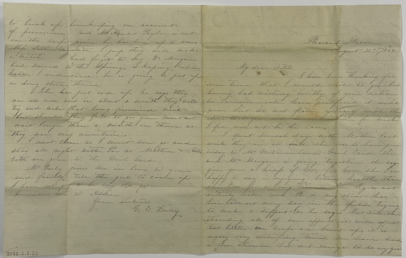 - Letter from Victoria Cunningham Bailey to Margaret Cunningham Sullivan — August 21, 1866