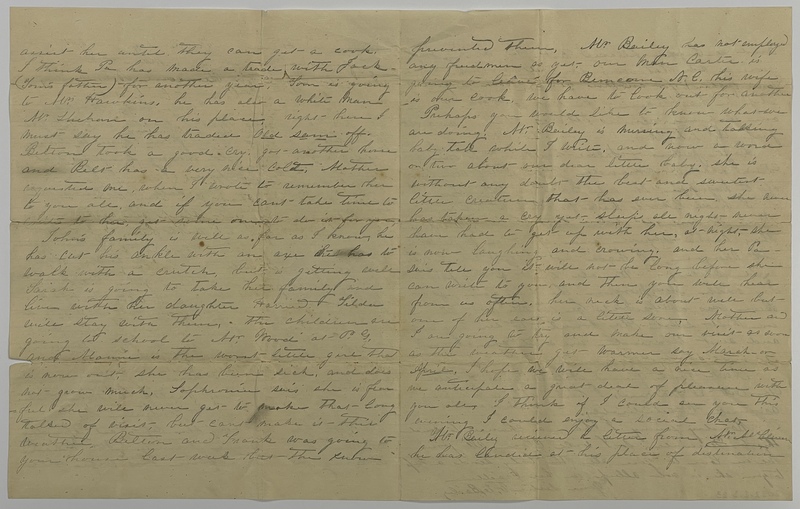 Mr. Bailey has not employed any freedmen as yet. our man Carter is going to leave for [Buncome?] N.C. his wife is our cook, we have to look out for another