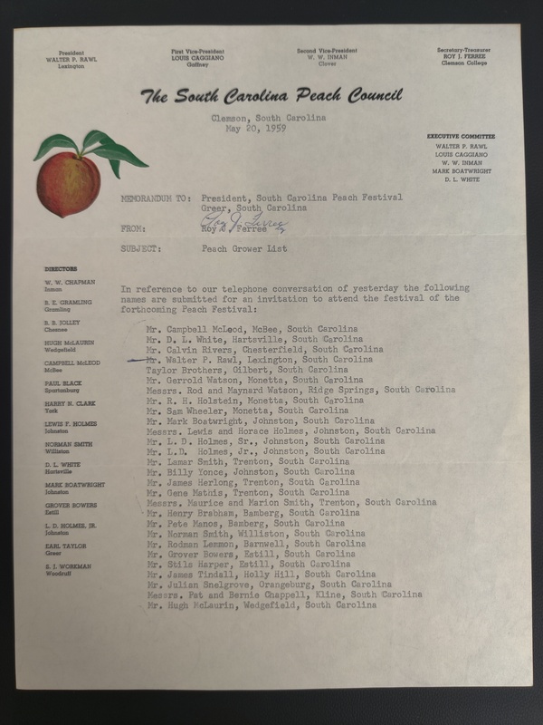 Typed on South Carolina Peach Council stationary