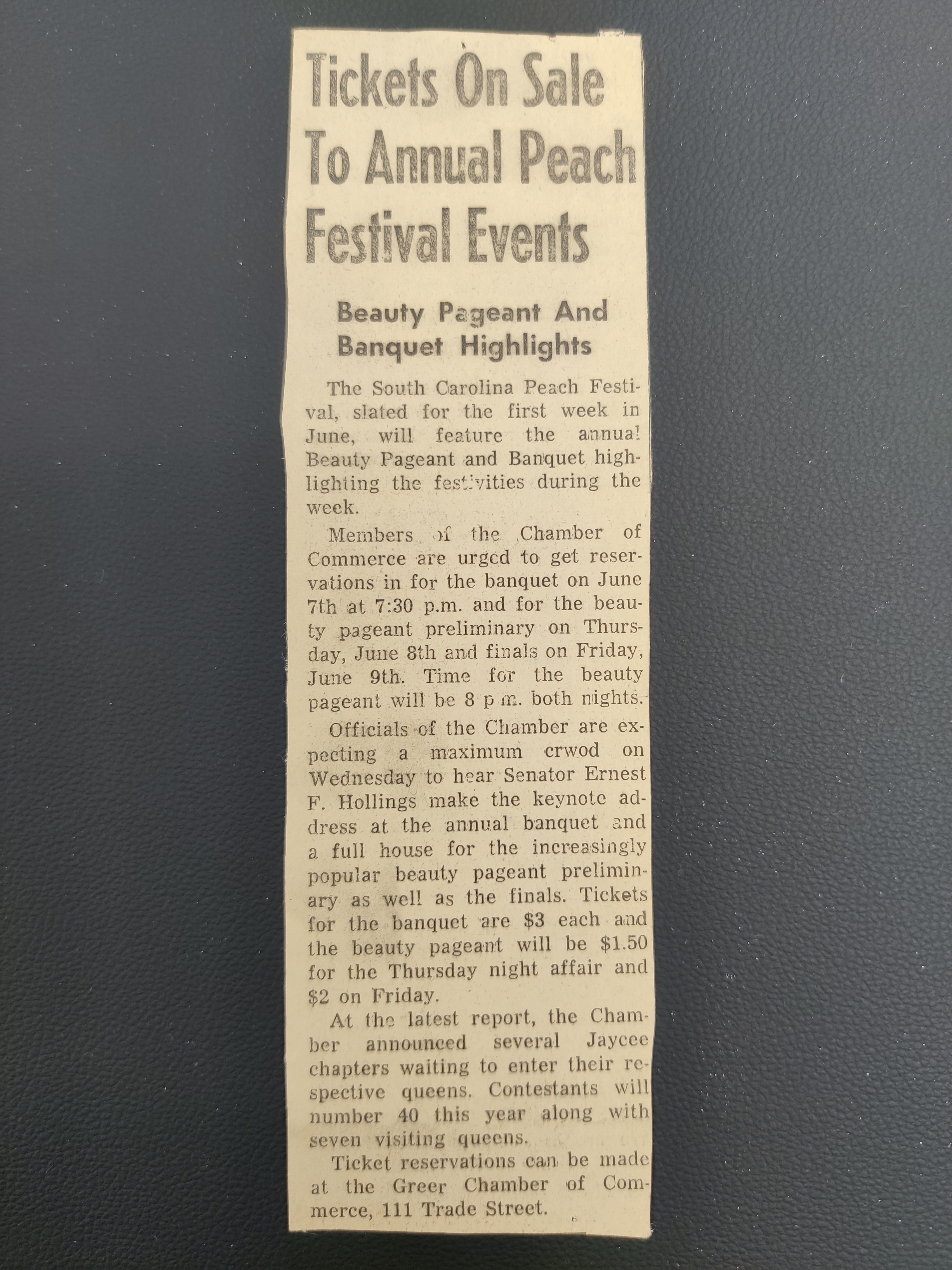 - Peach Festival newspaper article: tickets on sale