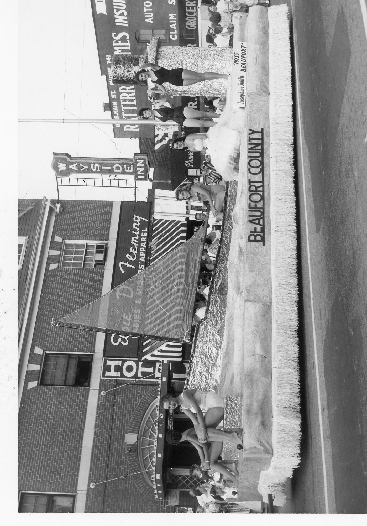 - Beaufort County Peach Festival parade float featuring Josephine Smith, Miss Beaufort. Photographed by Joe F. Jordan.