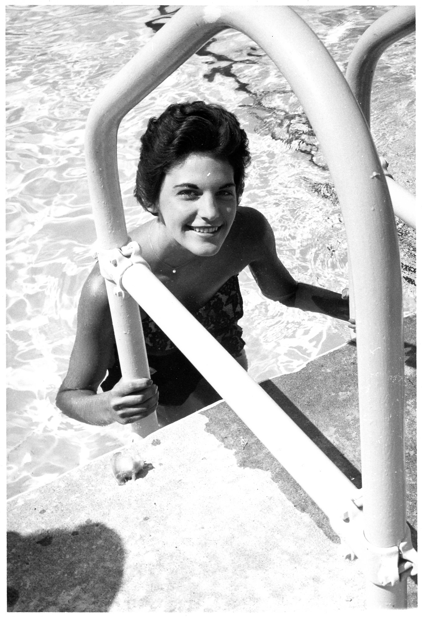 - Queen poses at Peach Festival swim event. Photographed by Joe F. Jordan.
