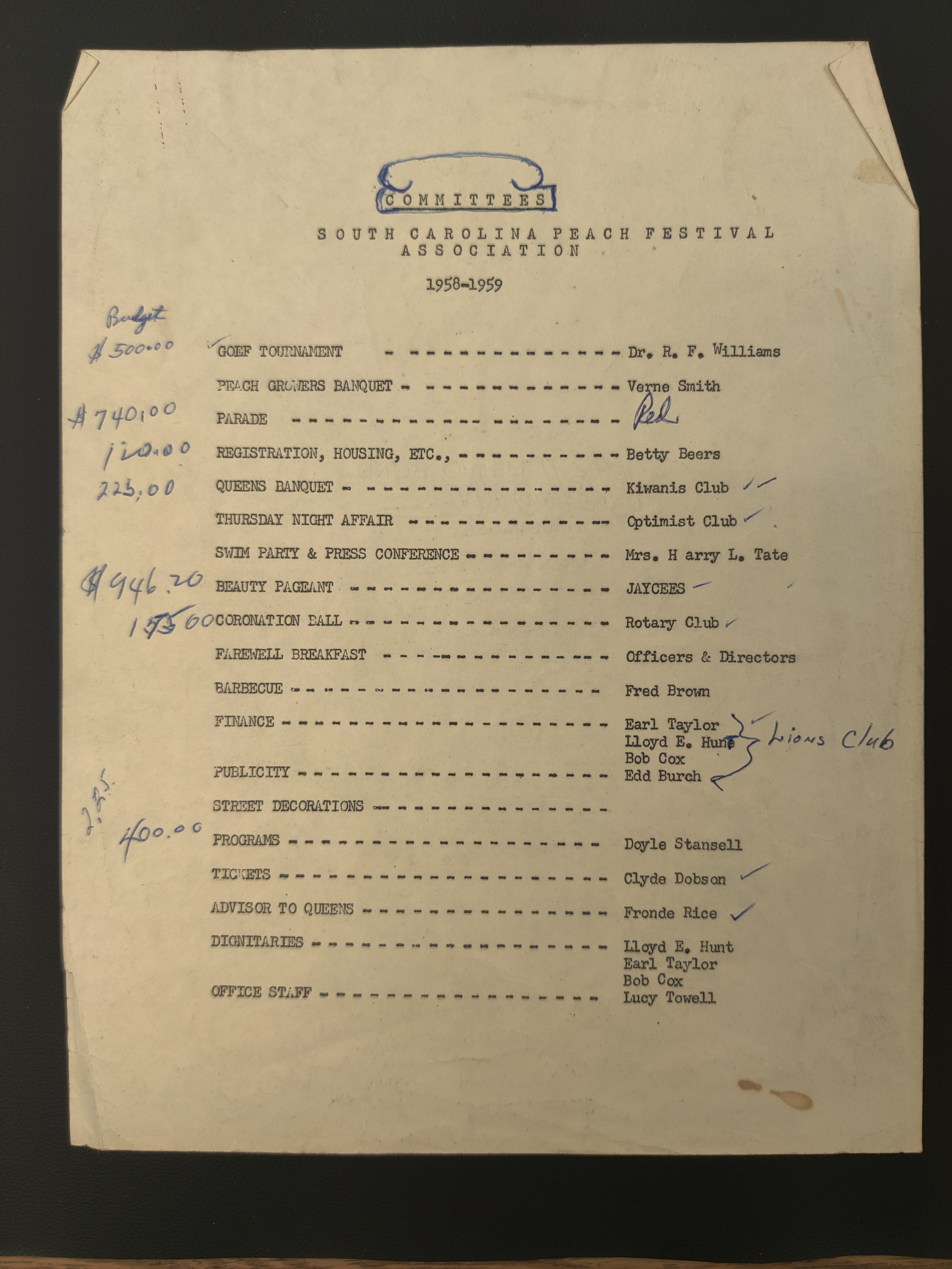Related resources are from the 1958 Peach Festival and are kept in the same archival folder.