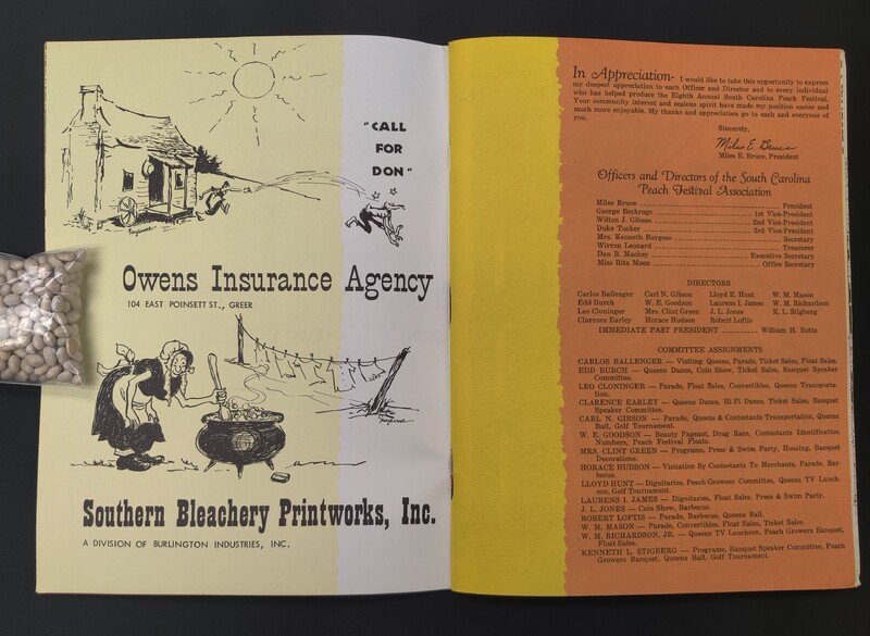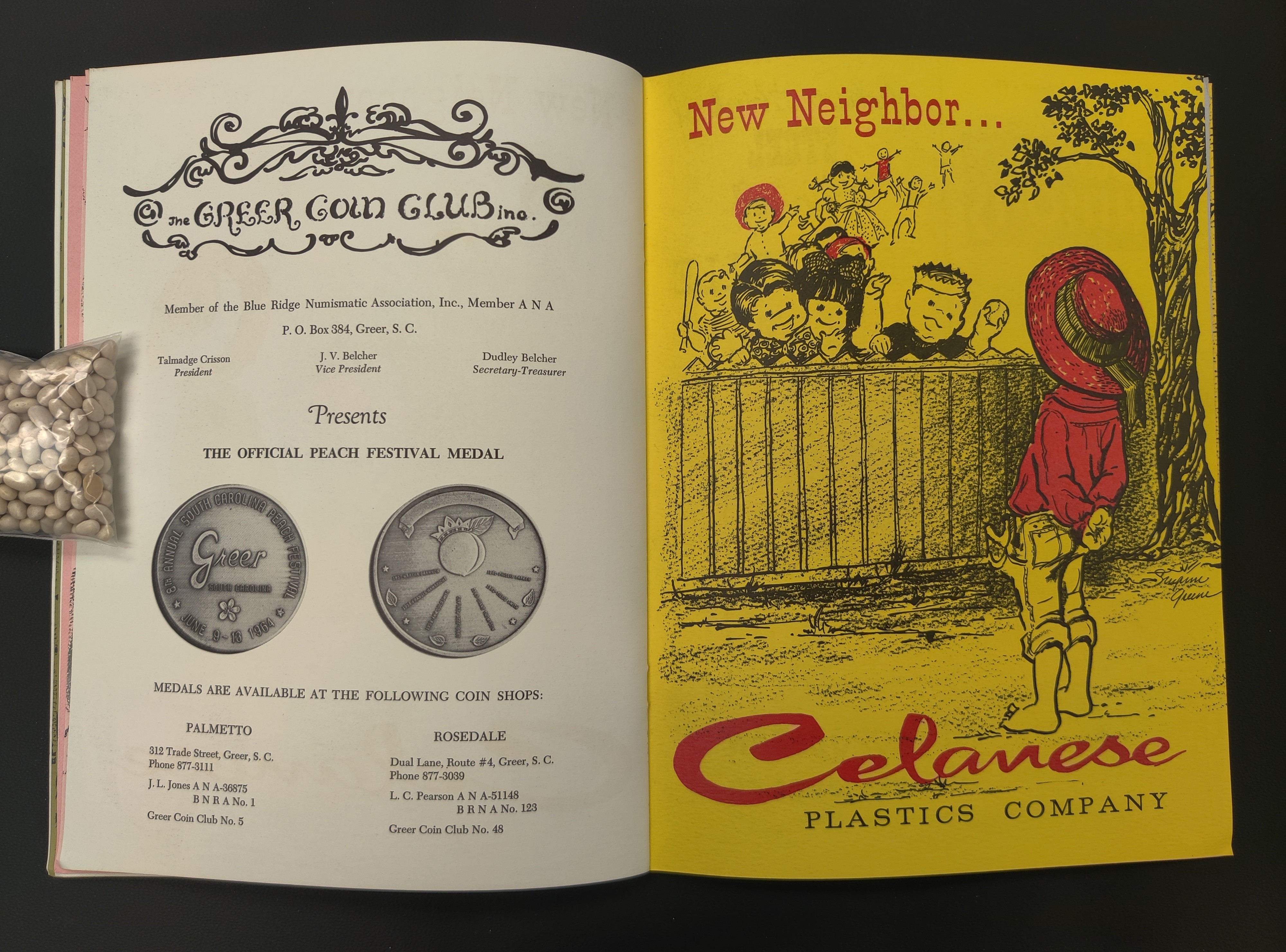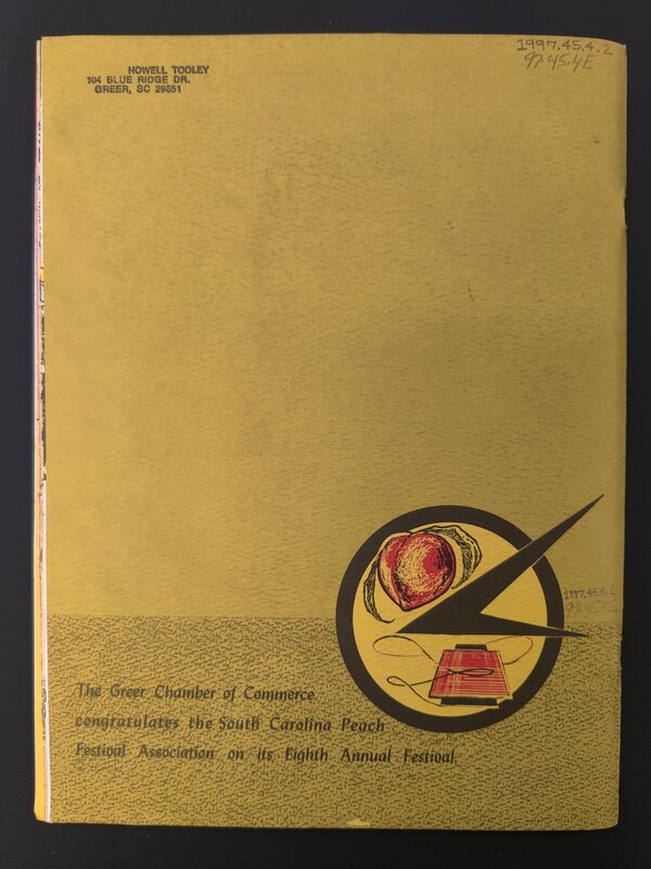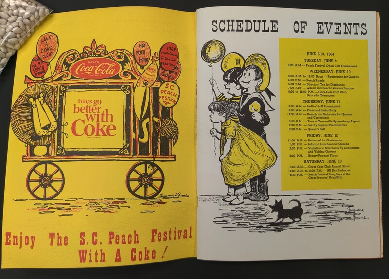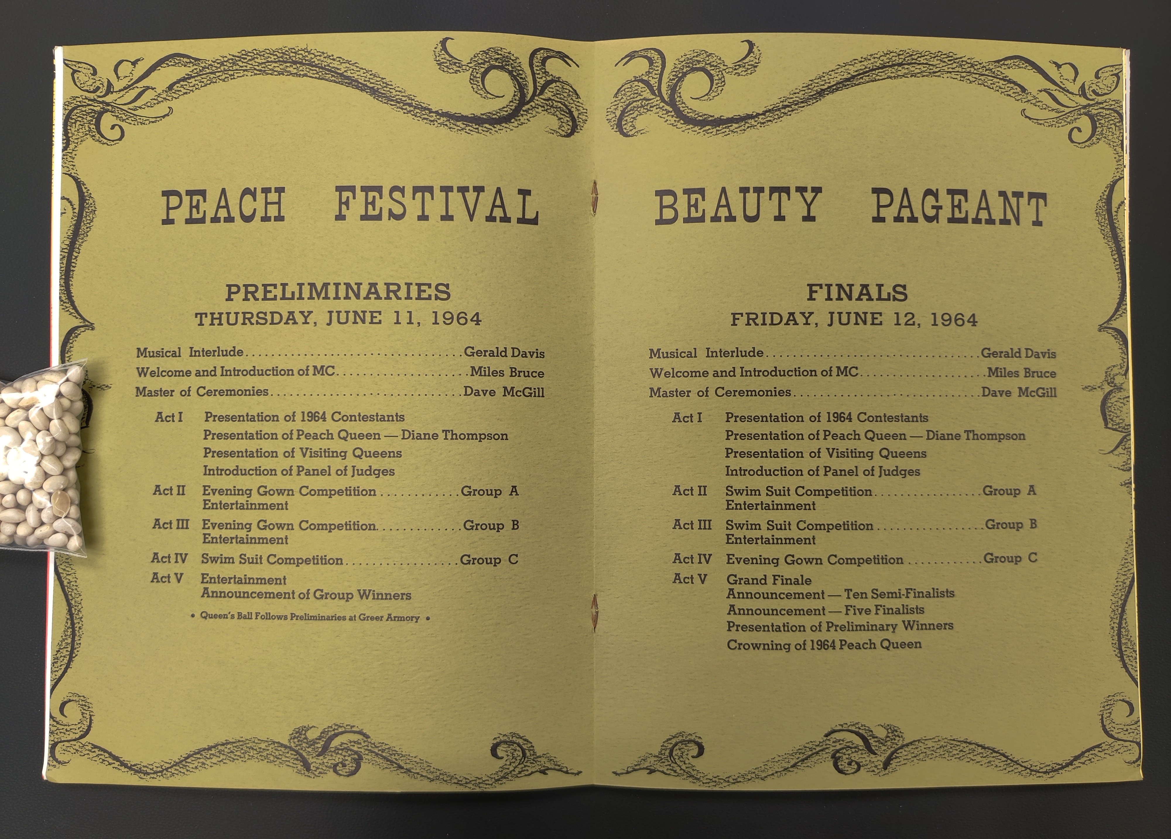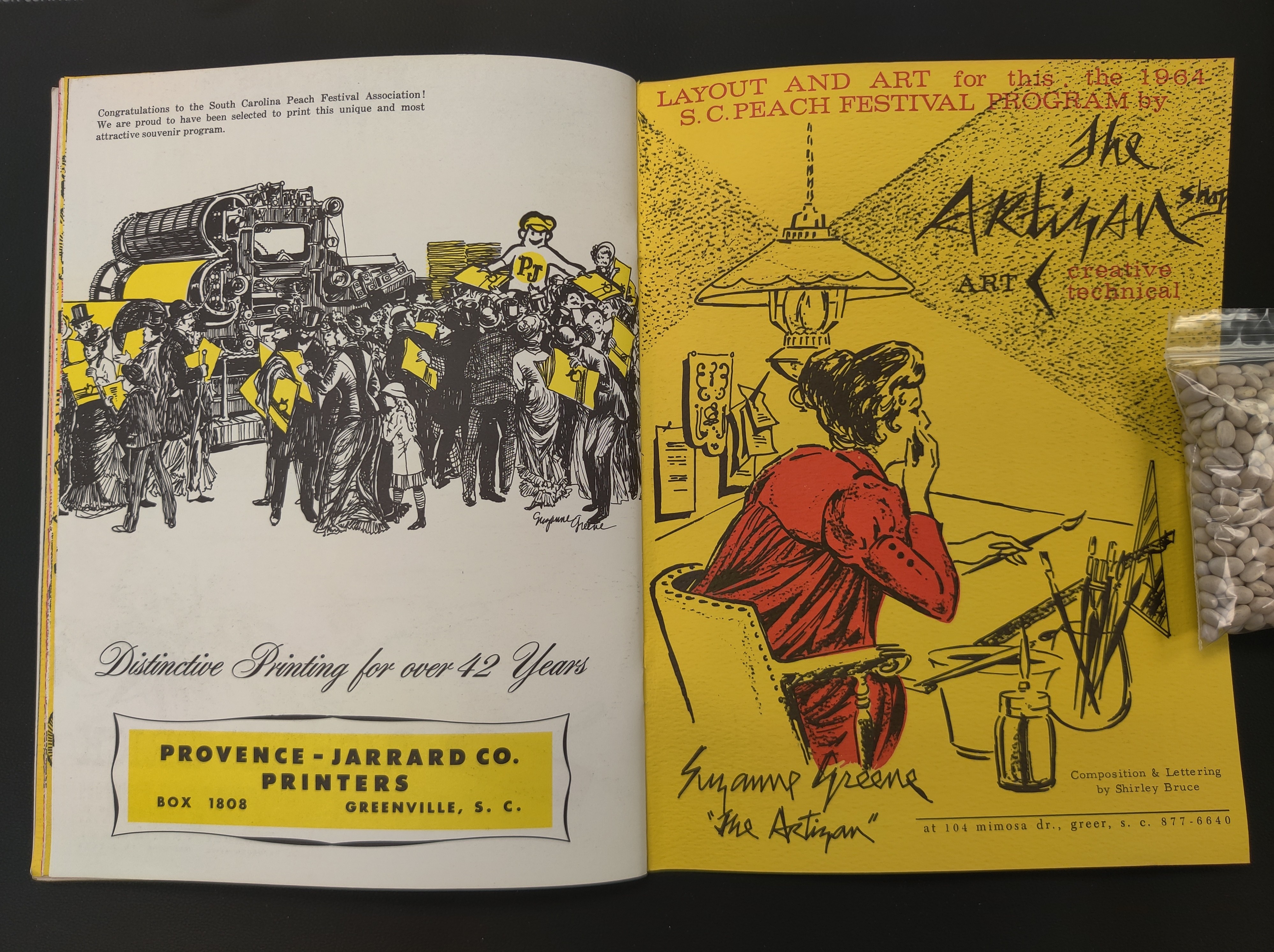 - A program for the 1964 Peach Festival including original illustrations by Suzanne L. Green and information about the festival