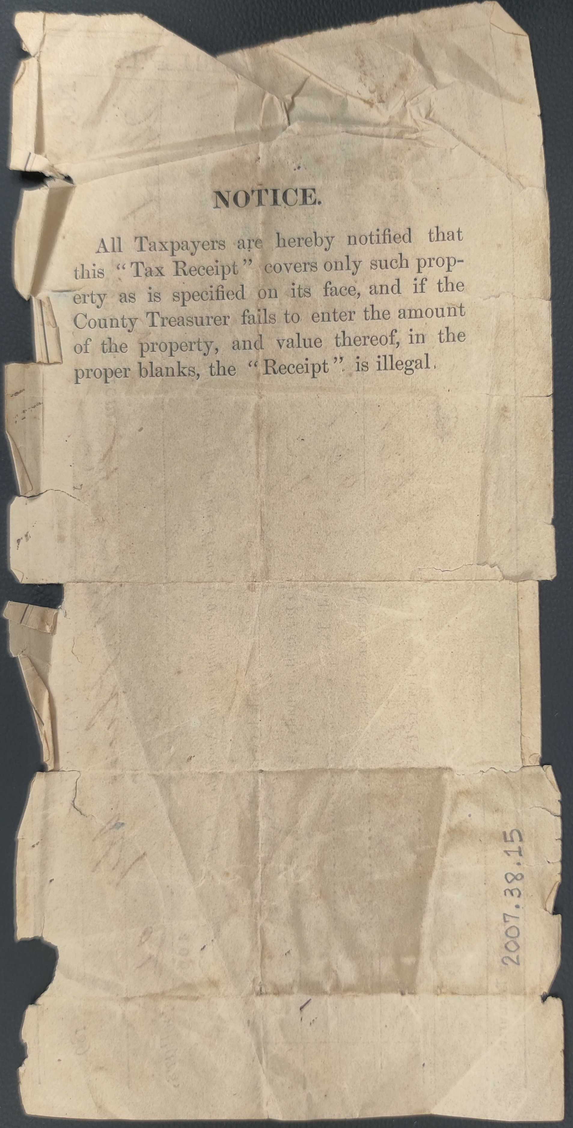 County tax receipt for Wm Plumbly, Nov. 9, 1896