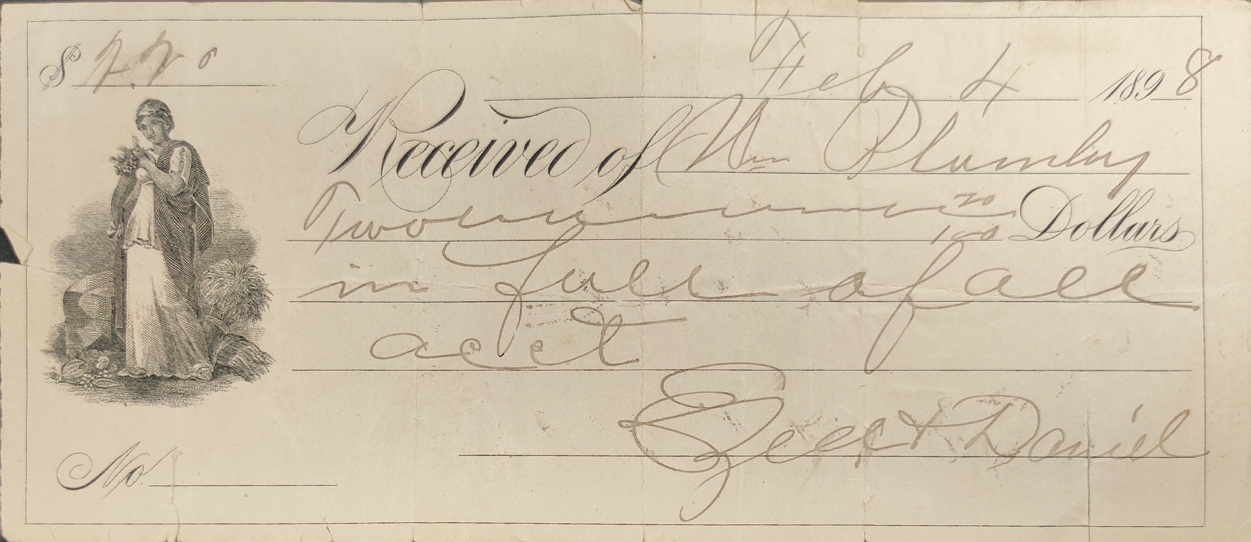 - Receipt for Wm. Plumley, Feb 4, 1898