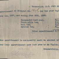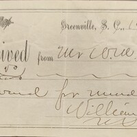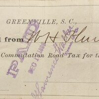 Greenville News Receipt for $1.50 from Mr. W.M. Plumley for ad and reward for murder of his son
