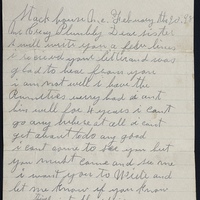 Letter from Ninevah Gosnell to her sister, Lucretia "Crecy" Gosnell Plumley, Feb 20, 1898