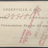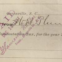 Commutation tax receipt for WH Plumley, Dec. 17, 1895